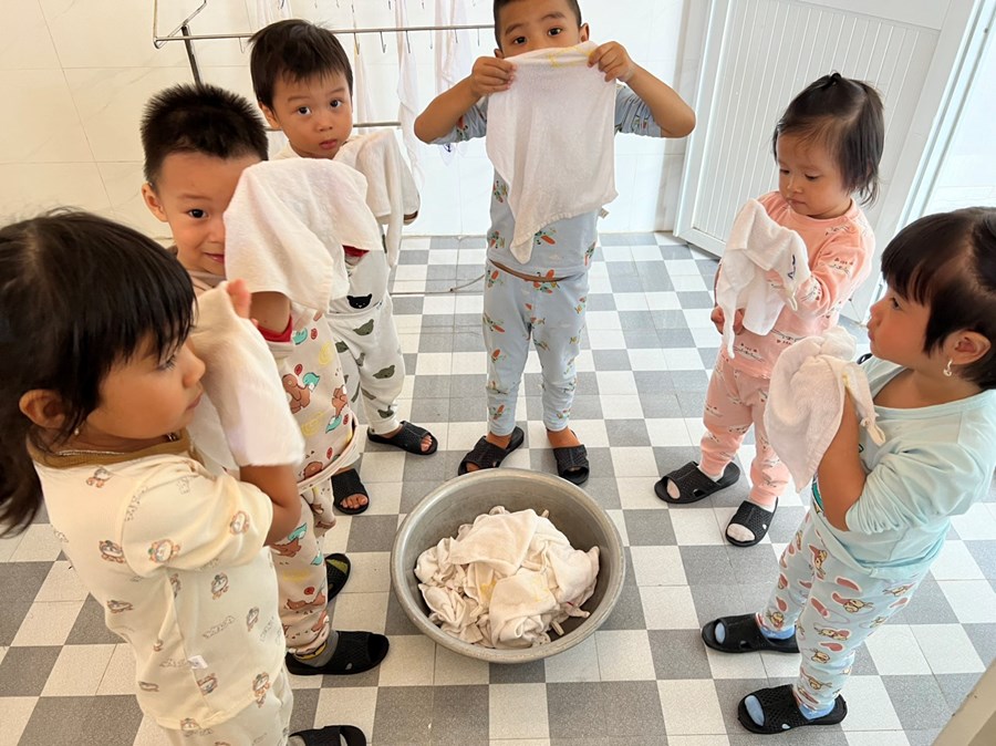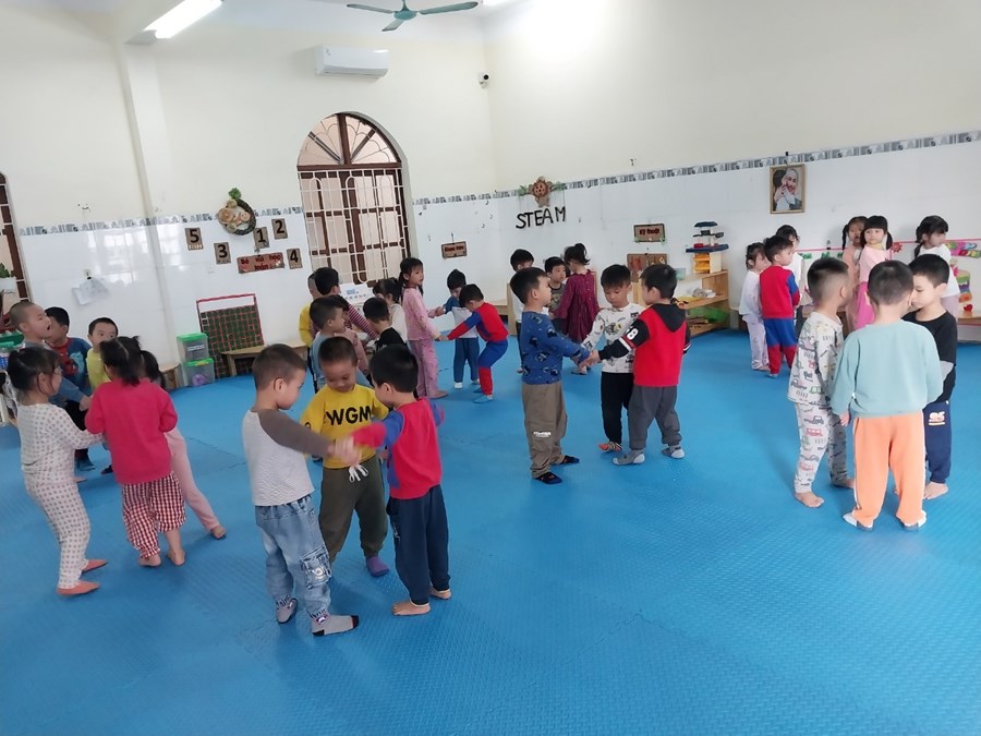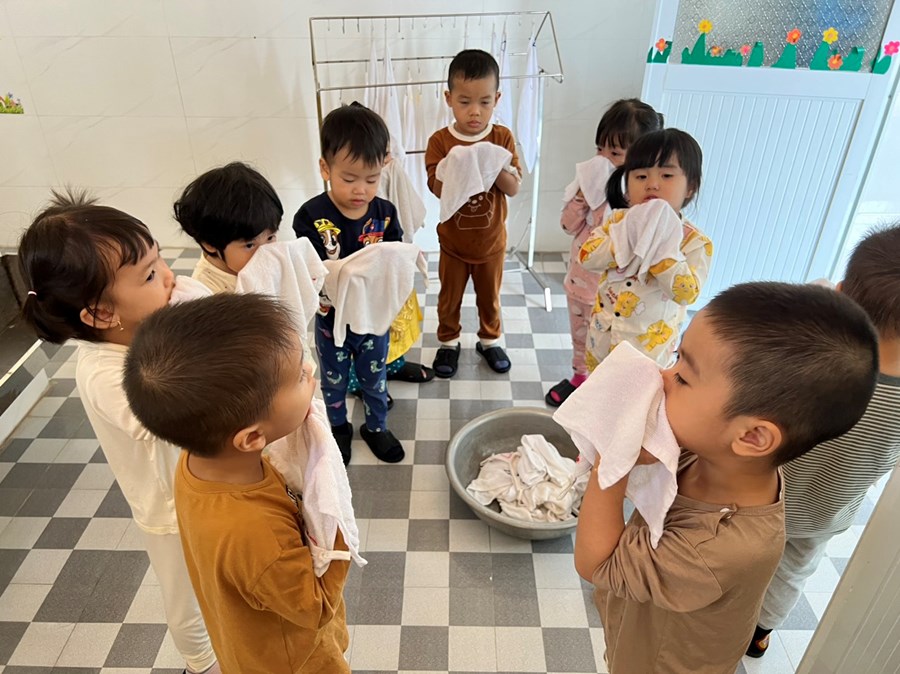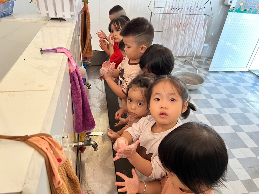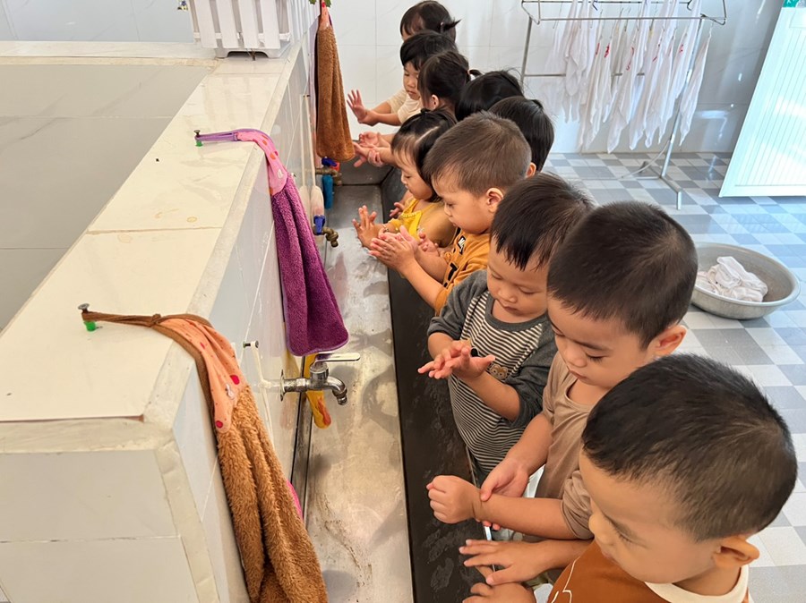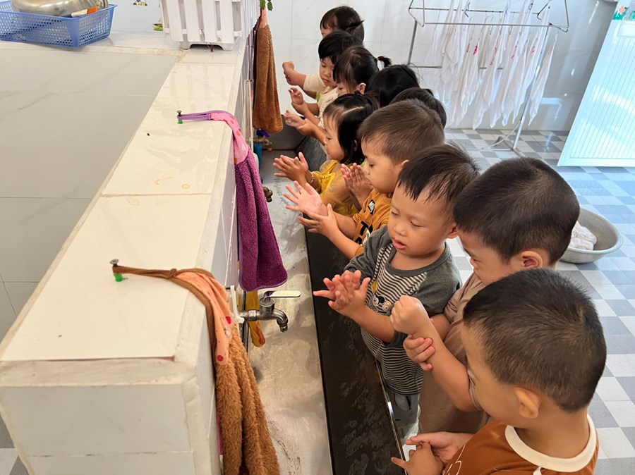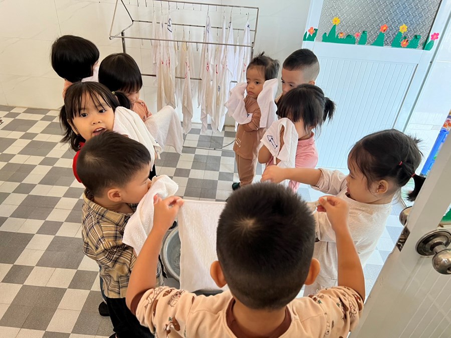 Hàng ngày, thời gian các bé ở trường mầm non từ sáng đến chiều. Trong suốt thời gian này bé được các cô giáo chăm sóc, nuôi dưỡng và tổ chức các hoạt động học tập, vui chơi, rèn nền nếp thói quen phù hợp, đảm bảo an toàn cho trẻ theo chương trình giáo dục mầm non. Ở trường bé được cô giáo chăm sóc, nuôi dưỡng và giáo dục để có thể phát triển một cách toàn diện
