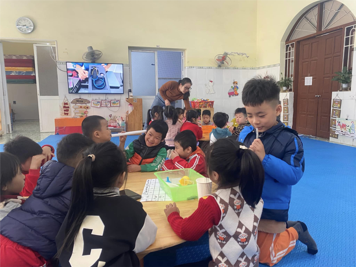 - Đánh giá trong quá trình trẻ khám phá các nguyên liệu làm ống nghe.