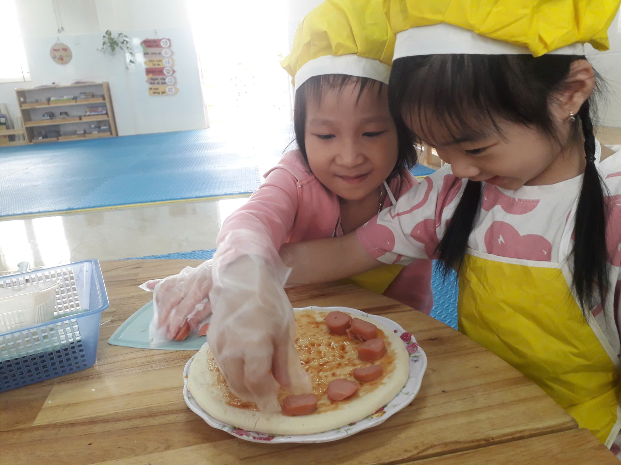 Hôm nay, các bạn nhỏ 5 tuổi trường mầm non Hòa Nghĩa tham gia hoạt động trải nghiệm “Làm bánh Pizza” - một món ăn vô cùng hấp dẫn.