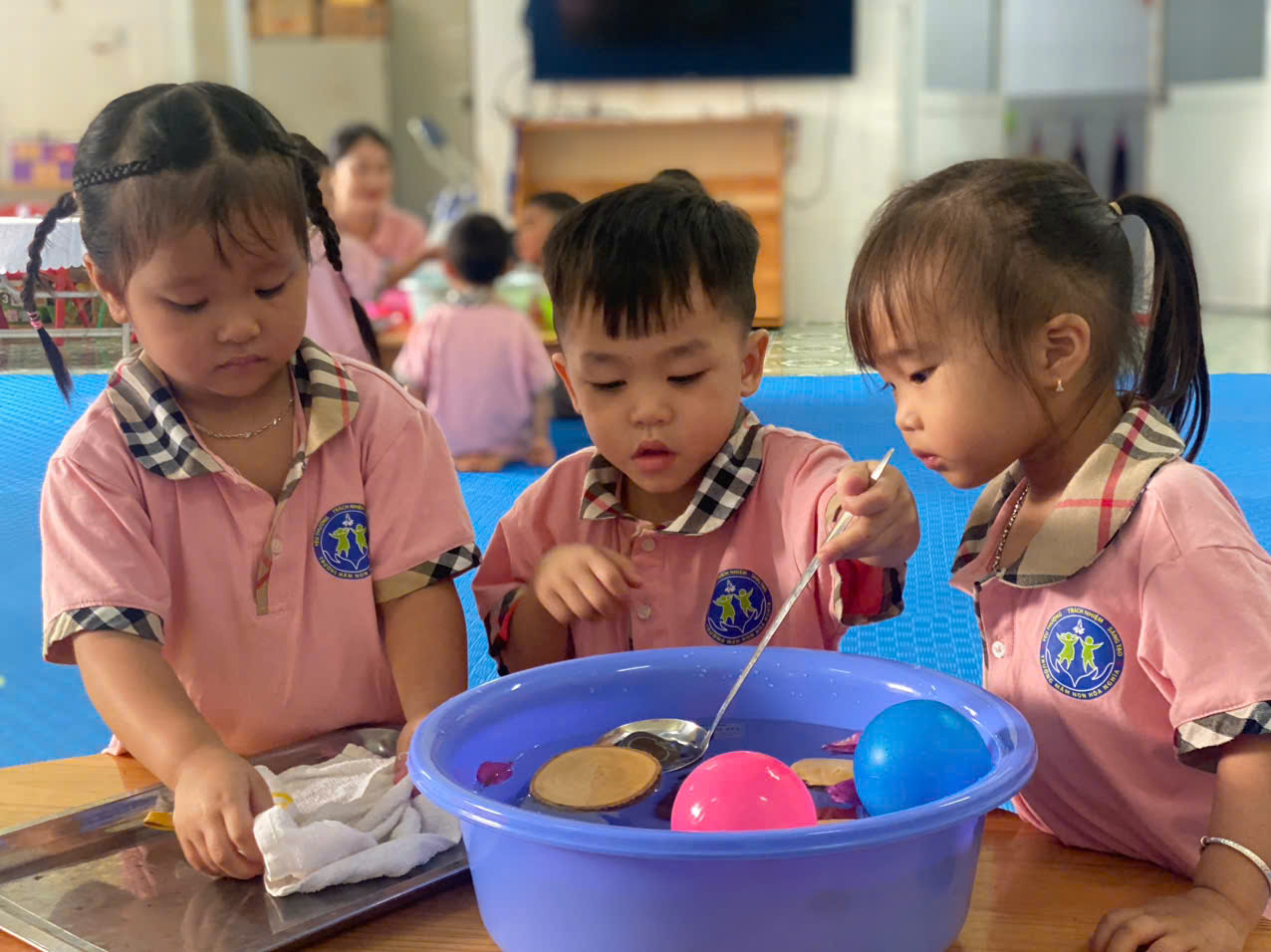 các bé lớp 3 tuổi C4 đã có một tiết học thí nghiệm vô cùng thú vị về vật chìm và nổi! Các bé đã cùng nhau khám phá, quan sát và thử nghiệm xem đồ vật nào sẽ chìm, đồ vật nào sẽ nổi trên mặt nước. Một trải nghiệm học tập đầy bất ngờ, giúp các bé hiểu hơn về thế giới xung quanh và phát triển khả năng tư duy khoa học ngay từ nhỏ!