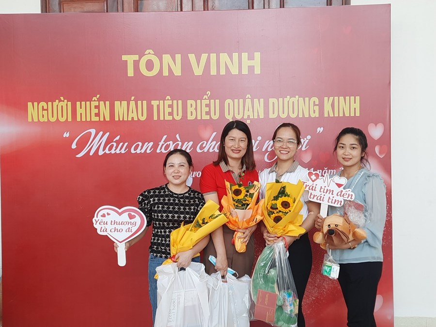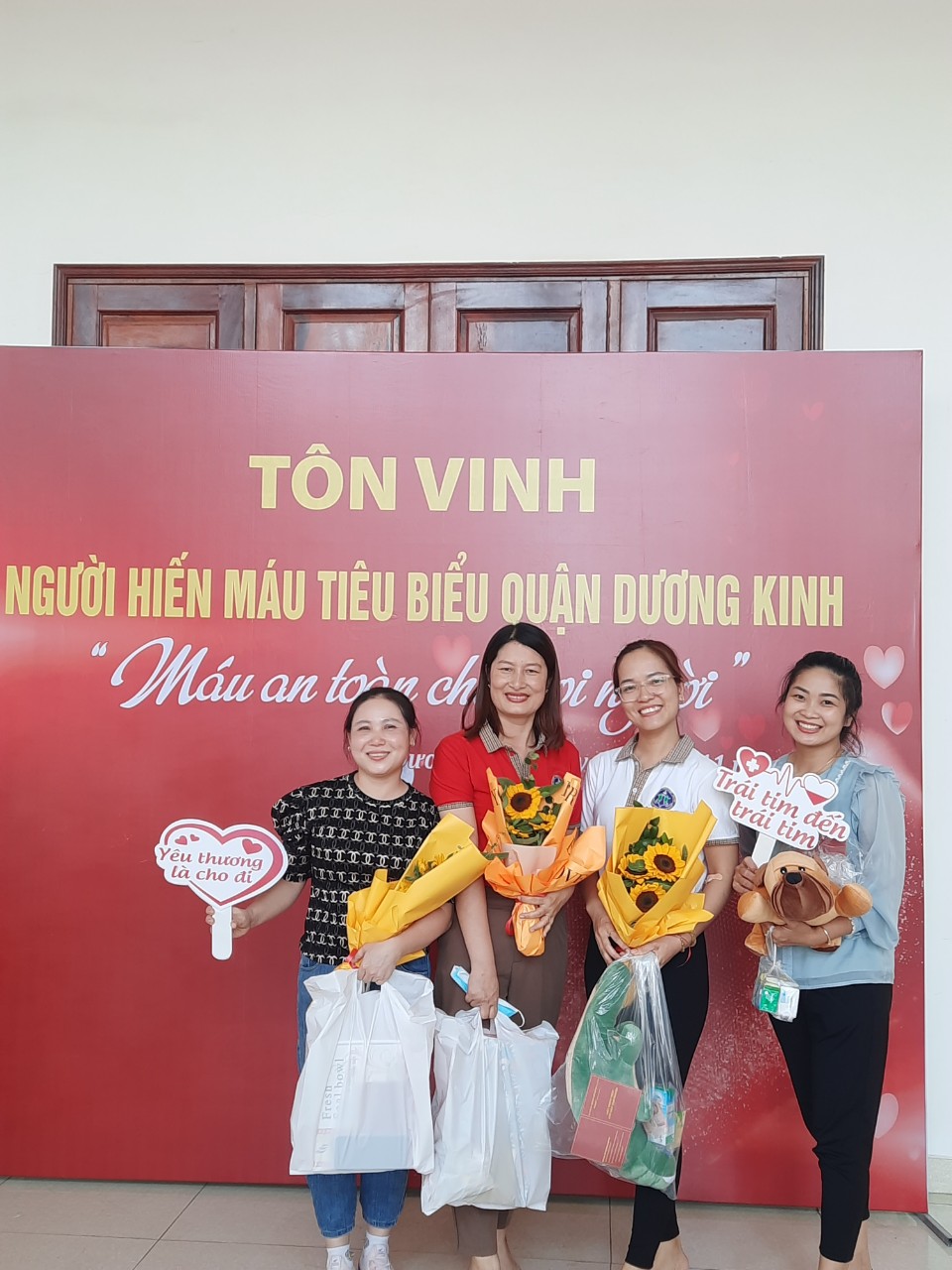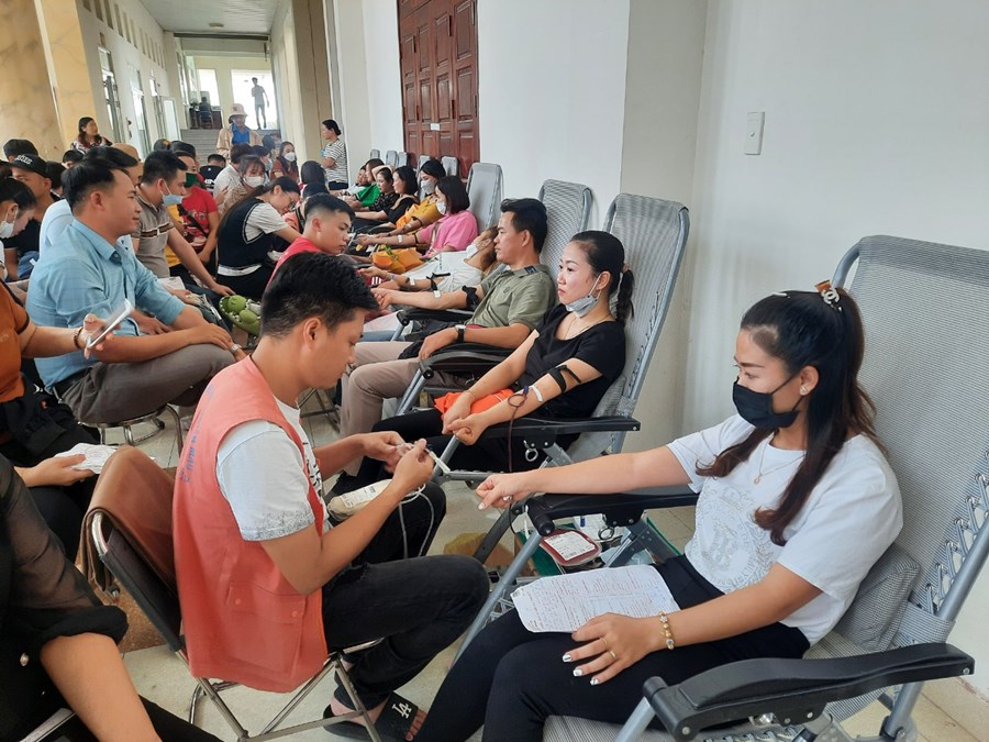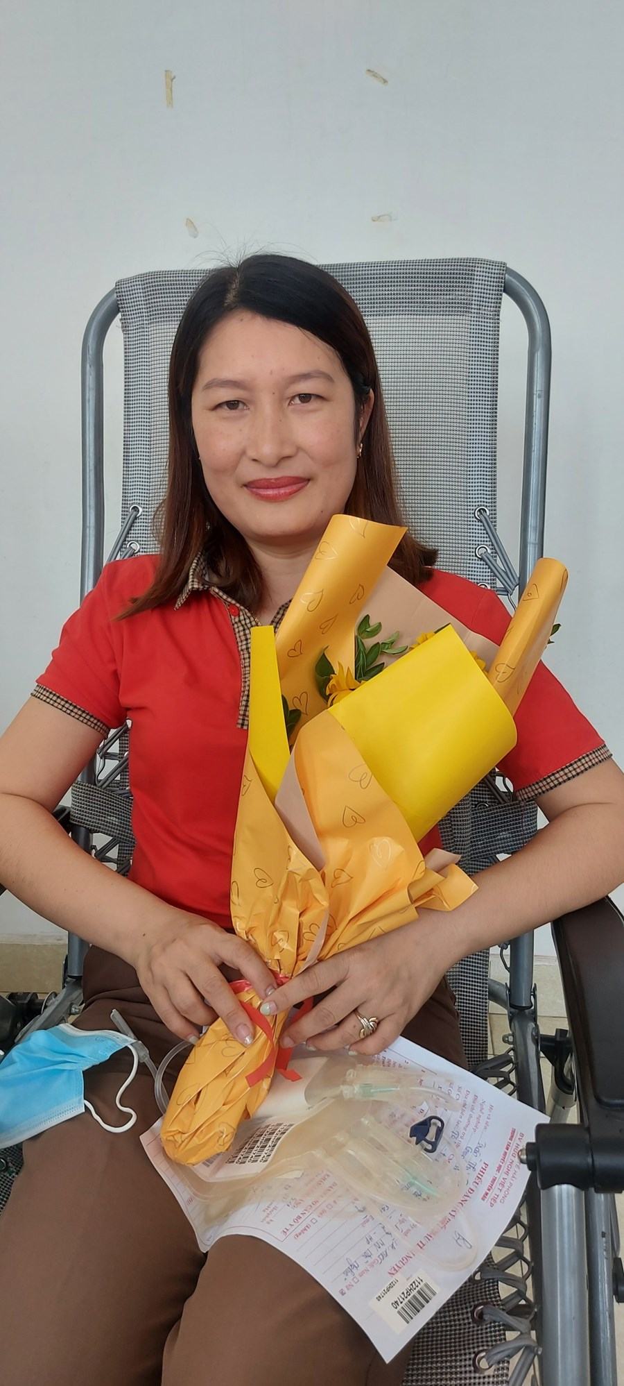 Cán bộ, giáo viên, nhân viên trường mầm non Hòa Nghĩa Tham gia hiến máu nhân đạo.
