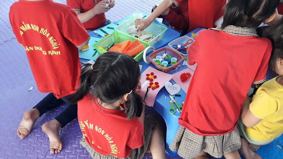 Hòa trong không khí sôi nổi hướng tới kỷ niệm 92 năm – Ngày thành lập HLH Phụ nữ Việt Nam (20/10/1930 - 20/10/2022), cô và trò trường mầm non Hòa Nghĩa tổ chức chuỗi hoạt động ý nghĩa chào mừng ngày lễ, với nhiều hoạt động thiết thực cho học sinh: làm quà, thiếp tặng bà, tặng mẹ, trang trí bánh tặng mẹ, nhằm giáo dục truyền thống tự hào của phụ nữ Việt Nam, bồi dưỡng lòng yêu thương và biết ơn tới các bà, các mẹ cho các bạn nhỏ. Các hoạt động này được các con hưởng ứng nhiệt tình và đạt kết quả rất tốt. Bạn nào cũng phấn khởi, vui mừng mang những món quà do tự tay mình làm ra để tặng mẹ của mình.