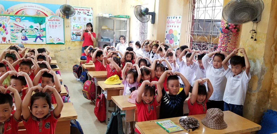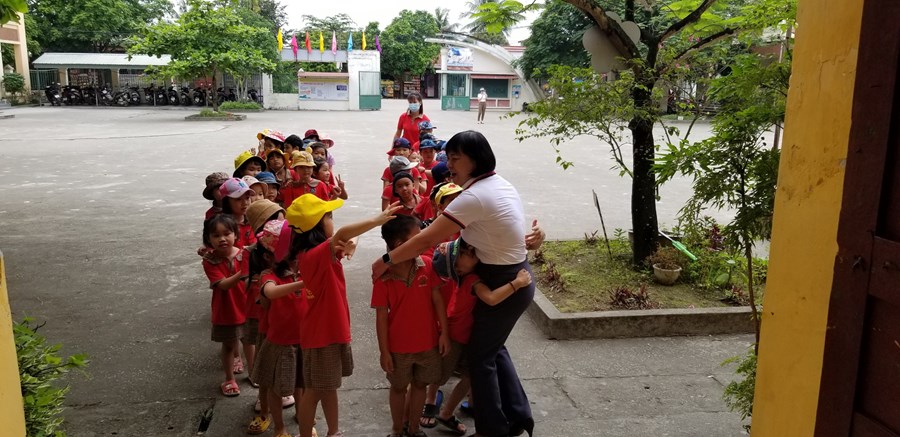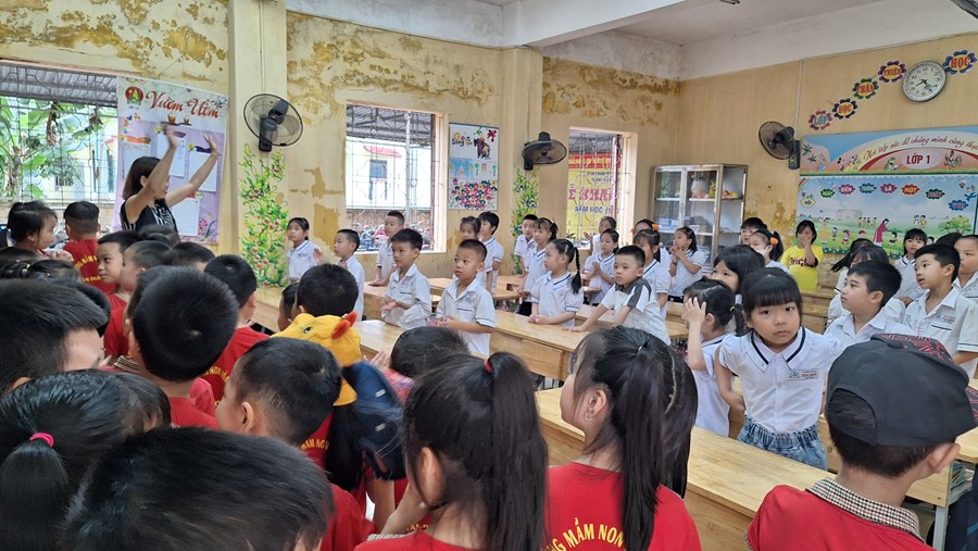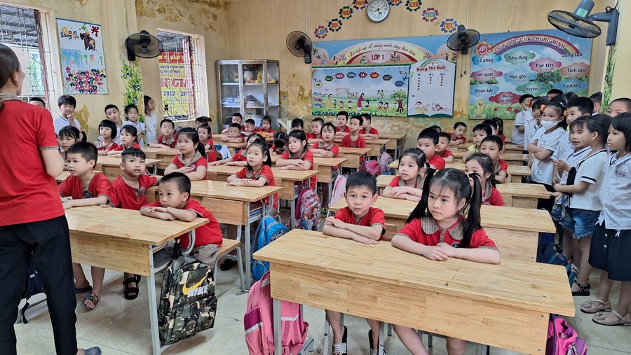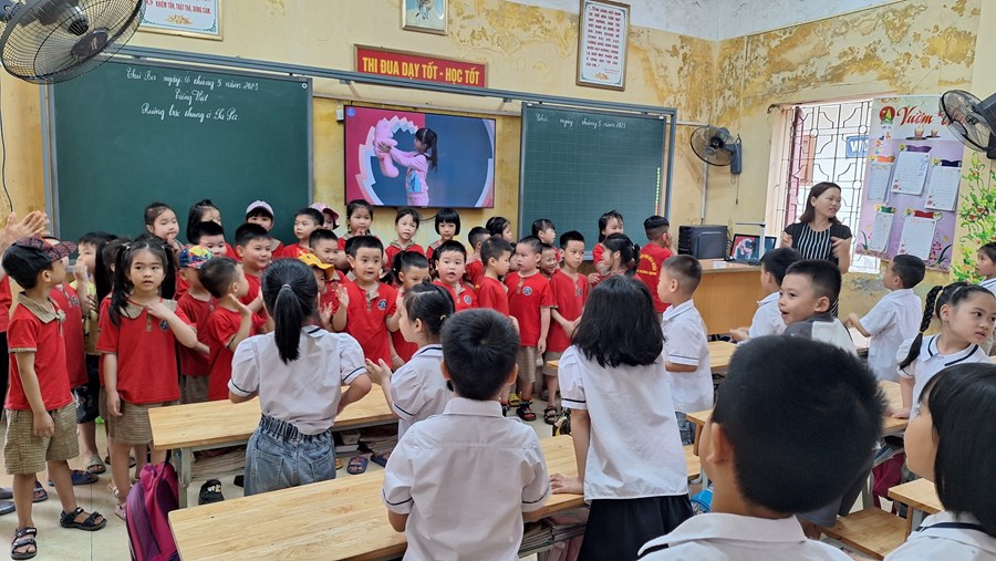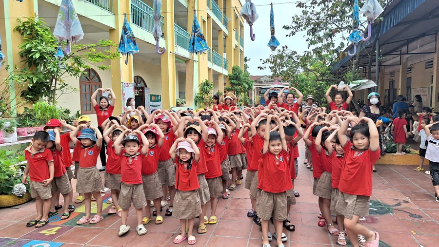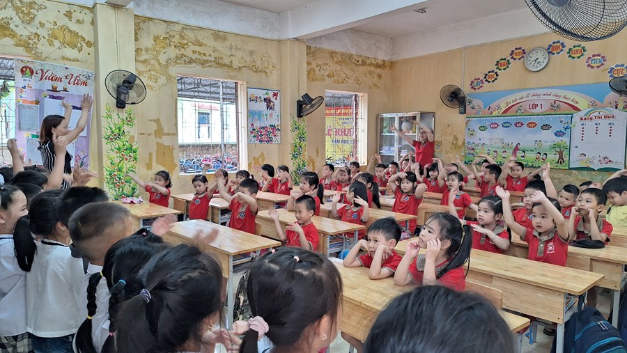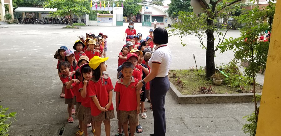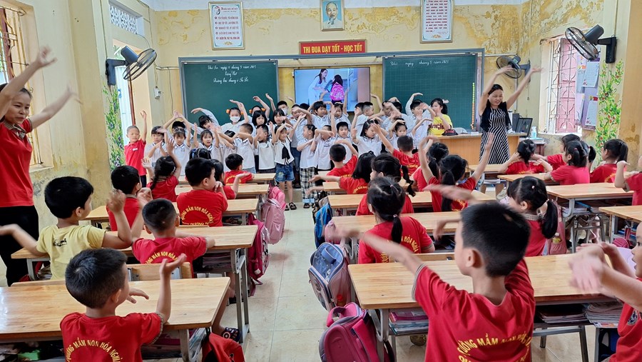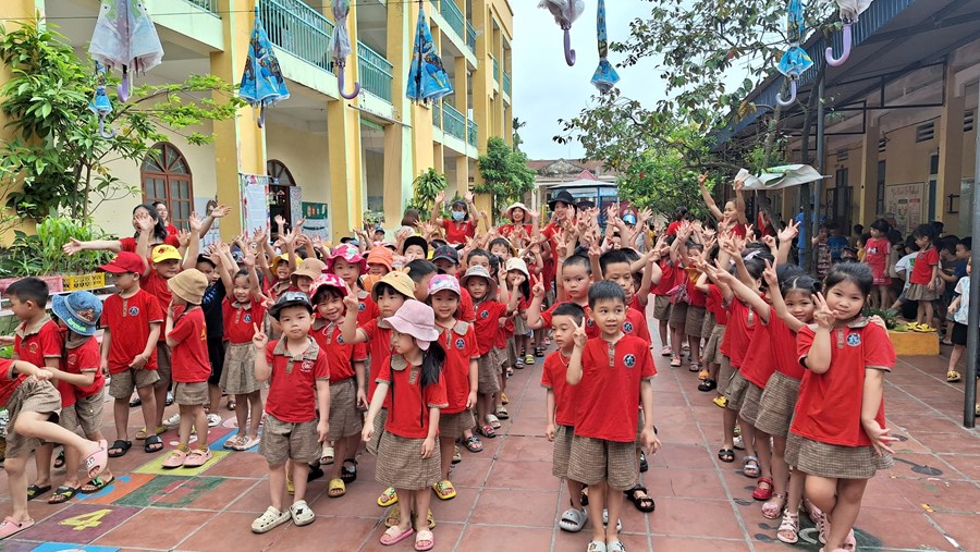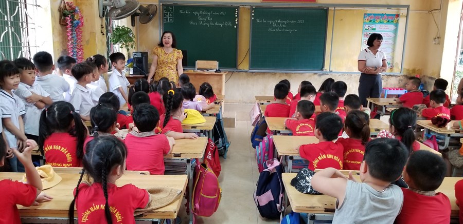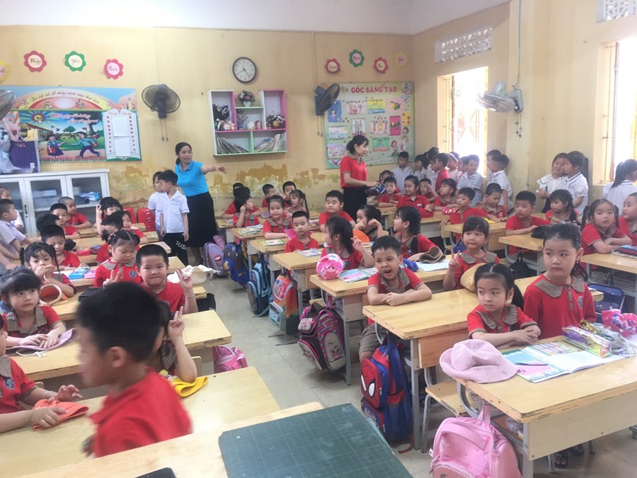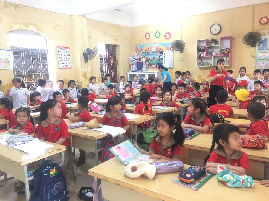 Ở trường mầm non, trẻ tham gia các hoạt động giáo dục chủ yếu theo nhu cầu, hứng thú của bản thân dưới định hướng, dẫn dắt, động viên, khích lệ của giáo viên. Bước sang môi trường tiểu học, học là hoạt động chủ đạo, các em phải hoàn thành các nhiệm vụ học tập theo tiến độ của cả lớp. Vì vậy, việc chuẩn bị tâm thế cho trẻ vào lớp 1 là rất cần thiết, giúp trẻ bước sang một giai đoạn mới bớt bỡ ngỡ và hoàn thành tốt các nhiệm vụ của bản thân. Đó là một trong nhiệm vụ quan trọng của trường mầm non, của giáo viên dạy các lớp 5 tuổi. Thông qua, xây dựng kế hoạch giáo dục, thiết kế các HĐGD theo hướng “học bằng chơi, chơi mà học” giúp trẻ phát triển tốt về thể chất, ngôn ngữ, nhận thức, tình cảm kỹ năng xã hội và có tâm lý vững tin sẵn sàng bước vào lớp 1. Một trong những hoạt động chuẩn bị tâm thế cho trẻ vào lớp 1 đó là thăm quan trường tiểu học, trẻ vô cùng hào hứng, được trò chuyện cùng với các cô giáo tiểu học, được tham quan toàn cảnh phòng học, sân trường, các khu vực trong trường, trẻ được trực tiếp tham dự giờ học của các anh chị lớp 1.