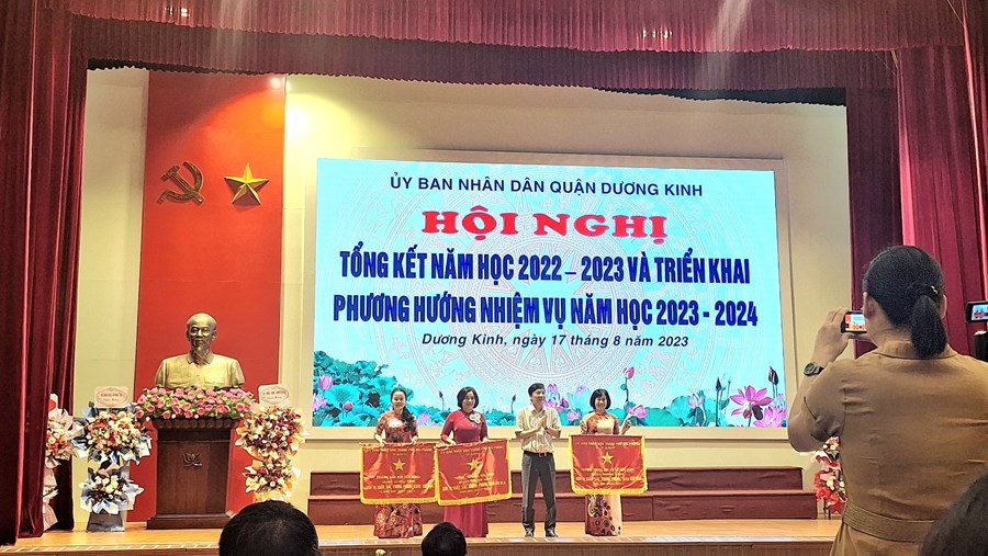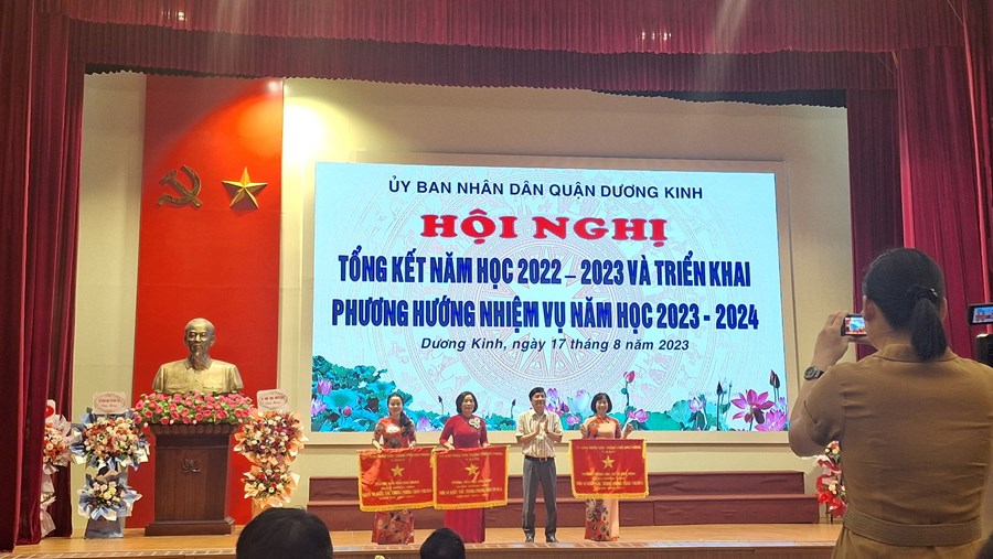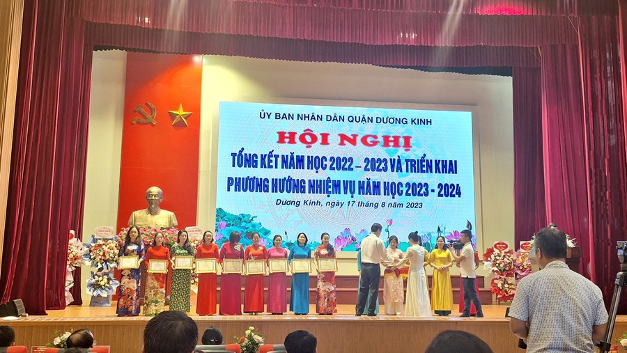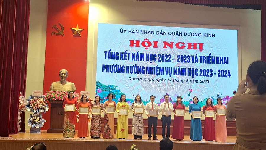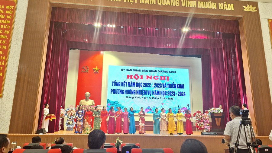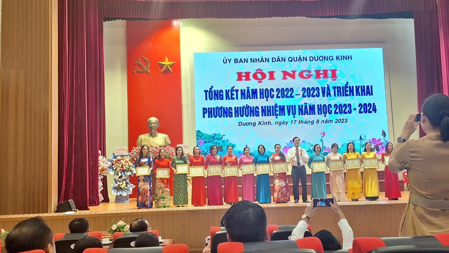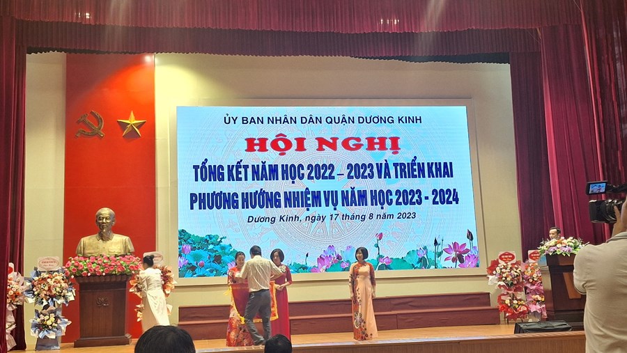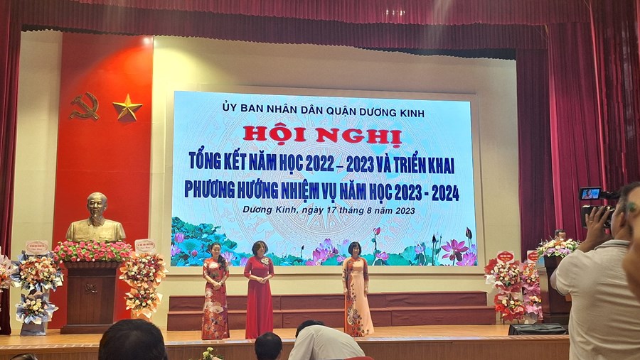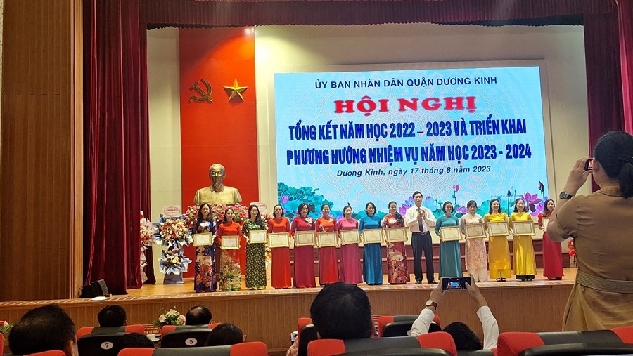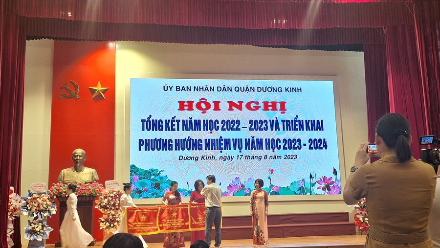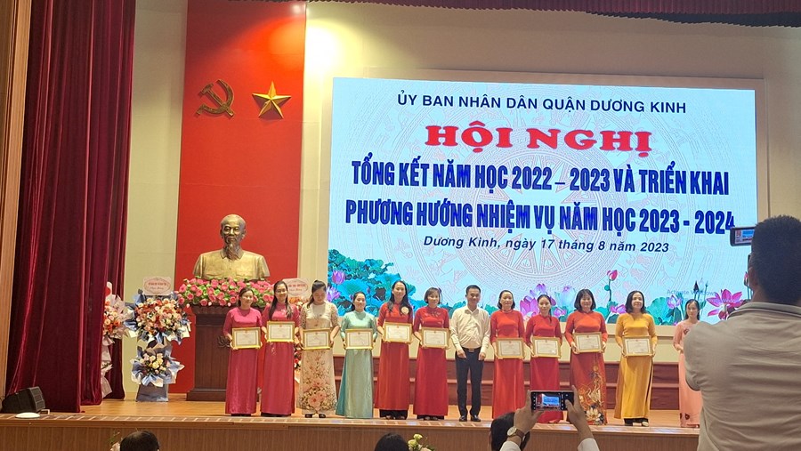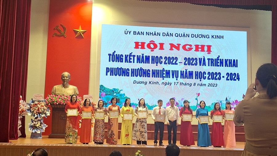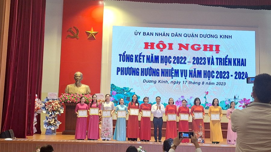 Chiều 17-8, UBND quận Dương Kinh tổ chức Hội nghị Tổng kết năm học 2022-2023, triển khai nhiệm vụ năm học 2023-2024. Đồng thời, biểu dương, khen thưởng các tập thể, cá nhân đạt thành tích xuất sắc trong năm học vừa qua.