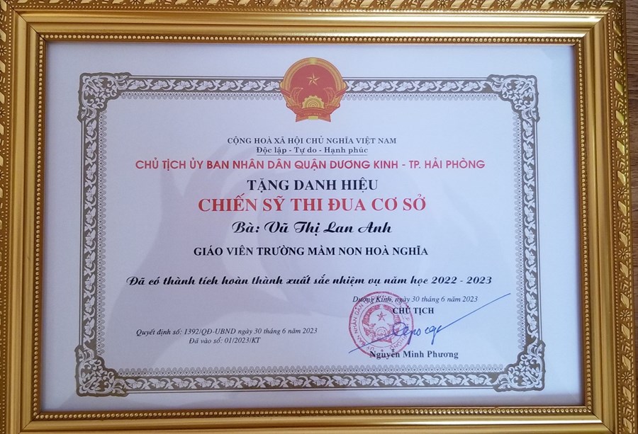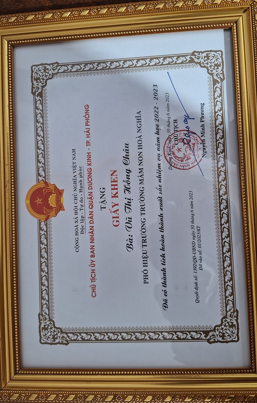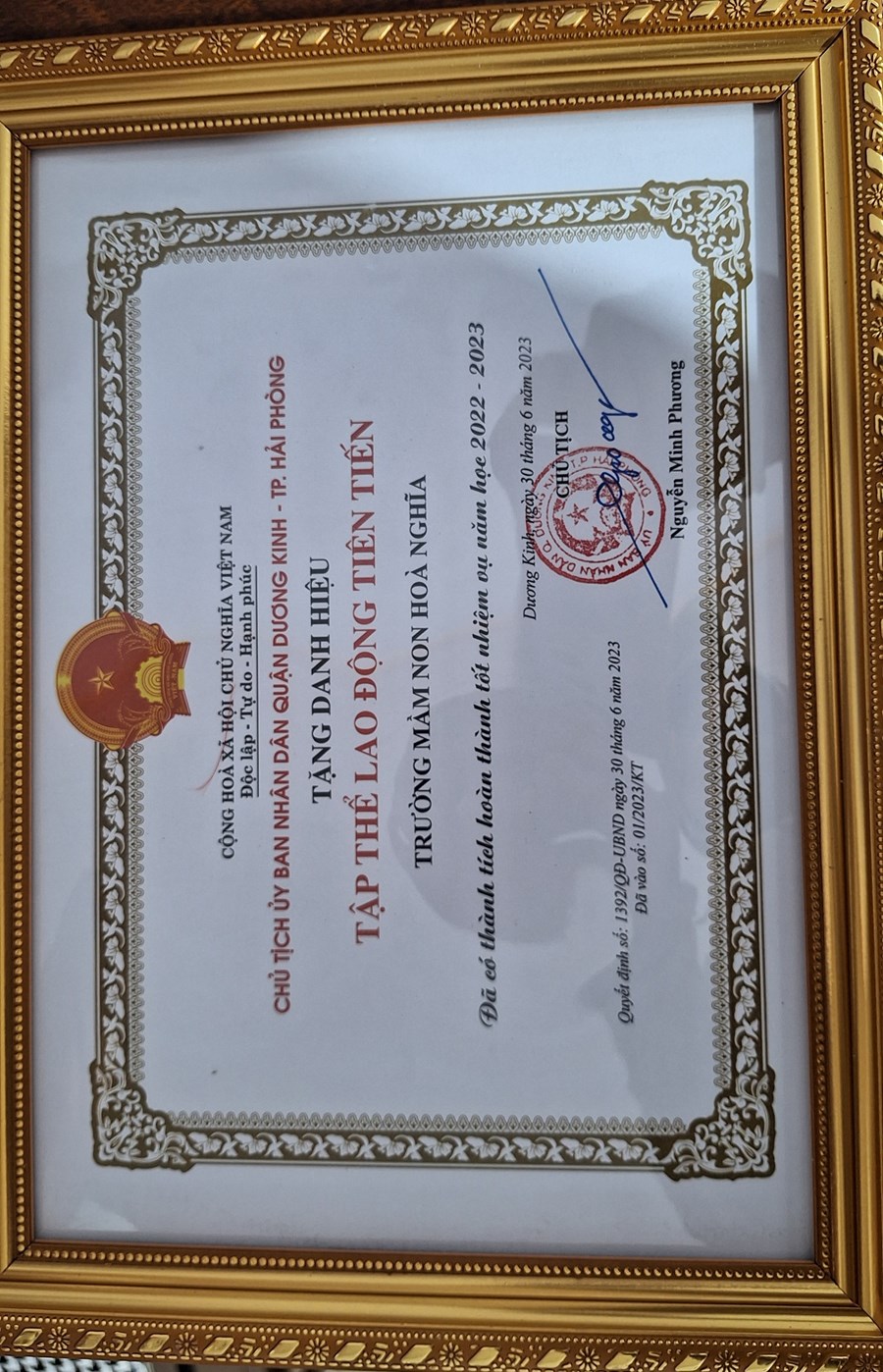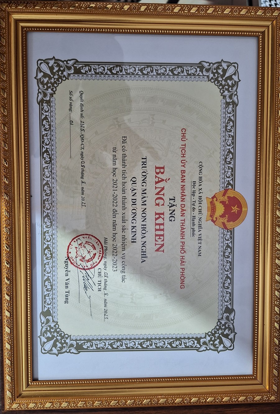 Chúc mừng tập thể, cán bộ, giáo viên, nhân viên trường mầm non Hòa Nghĩa đã hoàn thành xuất sắc nhiệm vụ và đạt thành tích cao trong năm học 2022-2023.