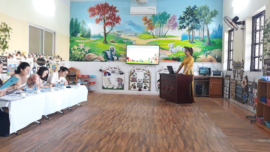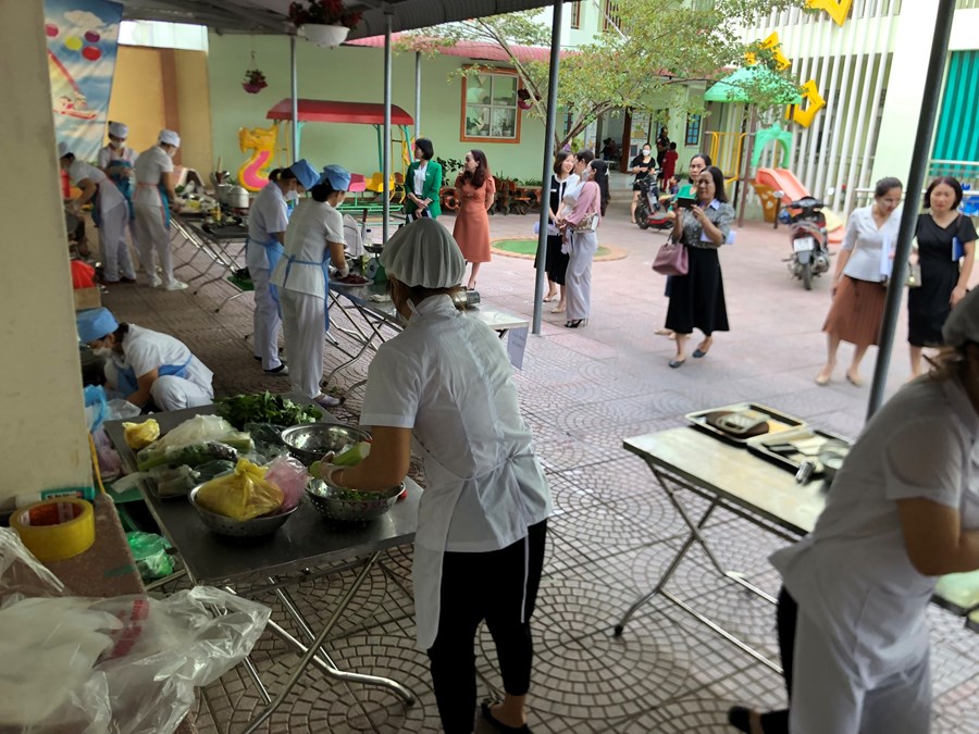 Thực hiện kế hoạch "Nhân viên nuôi dưỡng giỏi" của phòng giáo dục và đào tạo quận Dương Kinh năm học 2022-2023, hôm nay ngày 11/11/2022 trường mầm non Hòa Nghĩa có 3 đồng chí nhân viên nuôi dưỡng tham gia hội thi. Cả 3 đồng chí đã hoàn thành tốt 2 phần thi: thực hành và thuyết trình giải pháp sáng tạo.