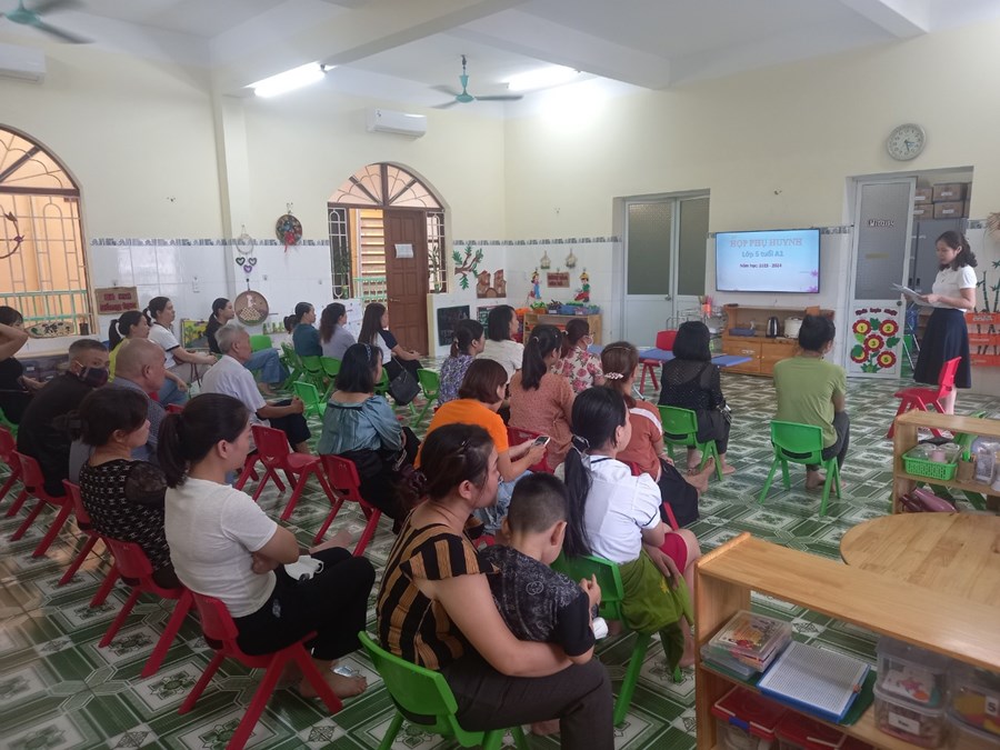 Chiều ngày 24/9/2023, trường mầm non Hòa Nghĩa tổ chức buổi họp phụ huynh đầu năm học: 2023-2024. Buổi họp diễn ra trong sự thân thiện, cởi mở và được sự đồng thuận, nhất trí của 100% phụ huynh.