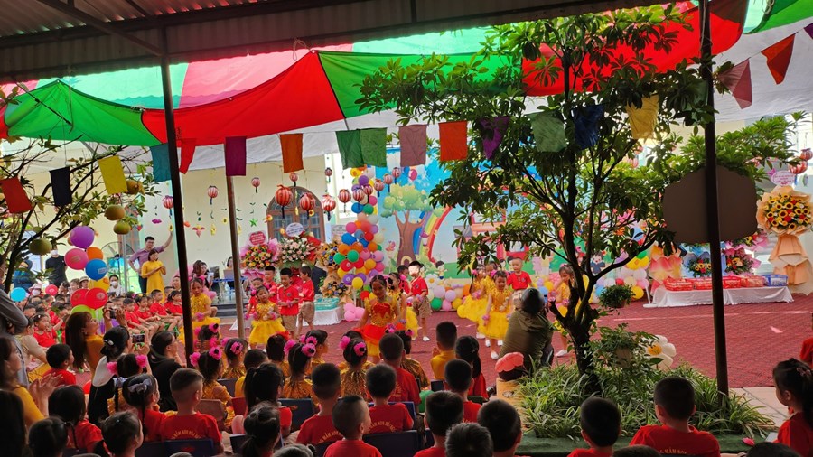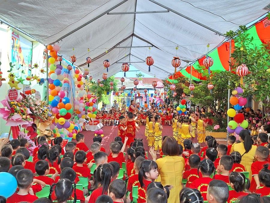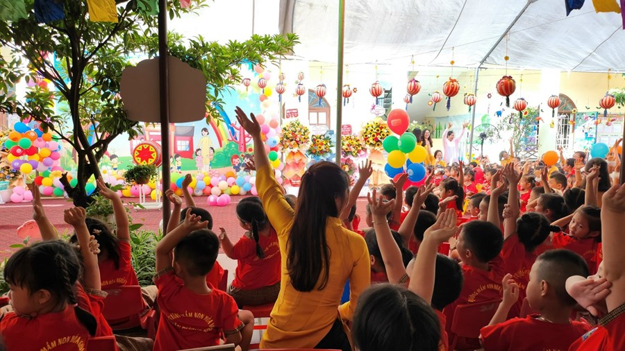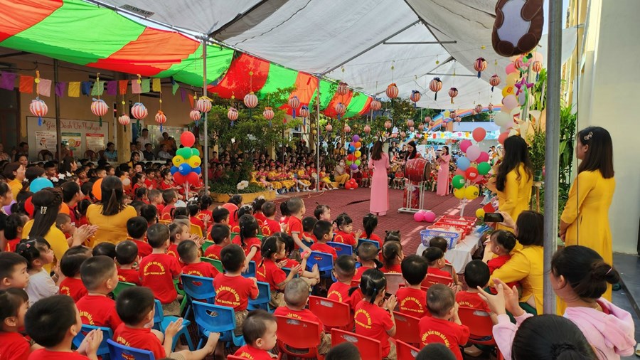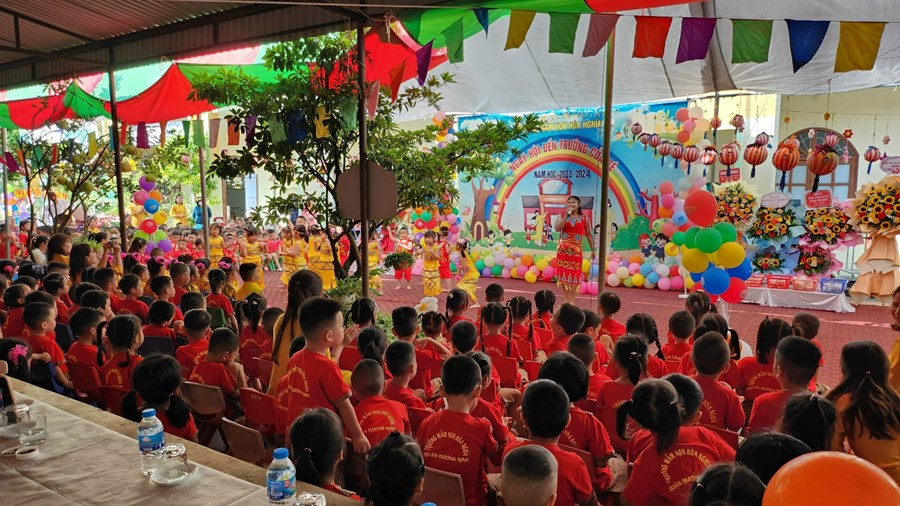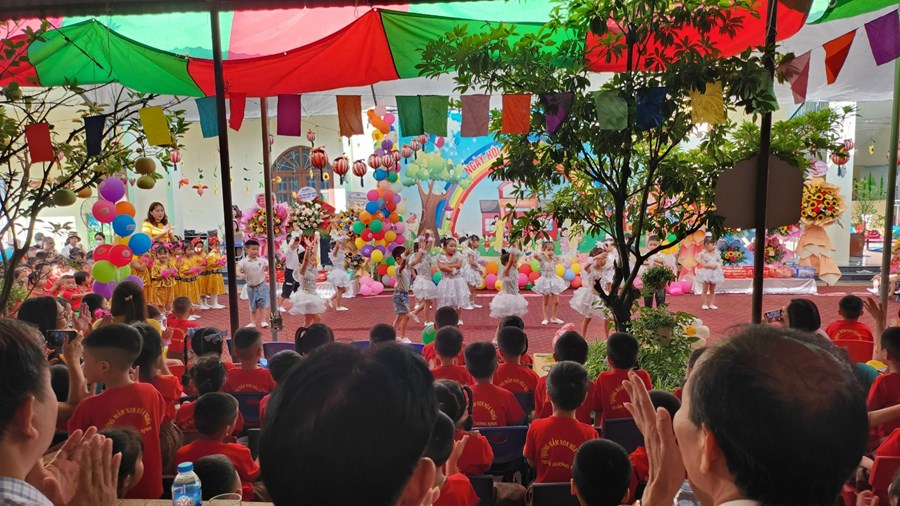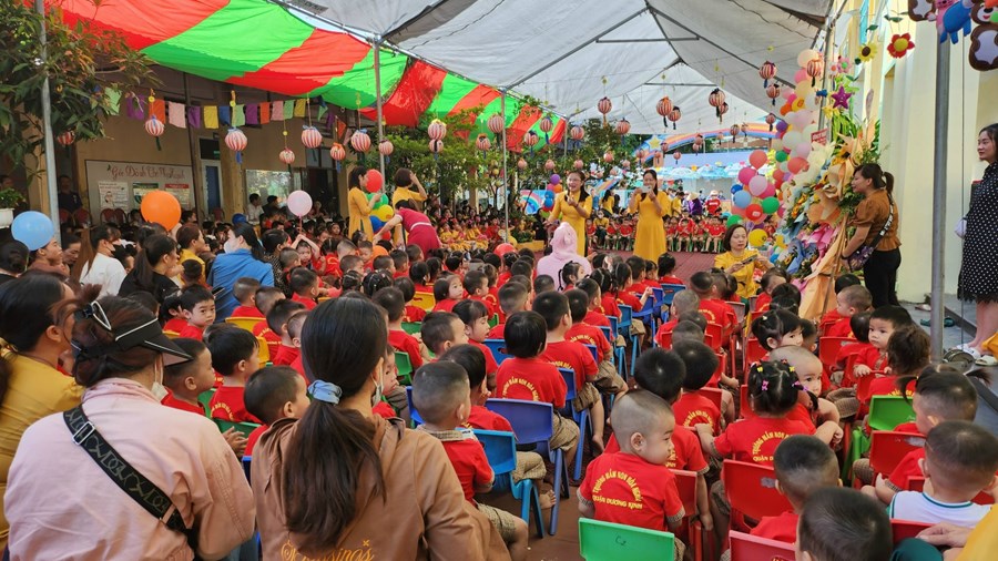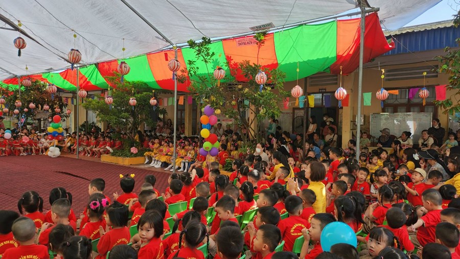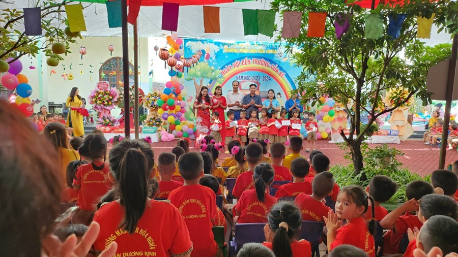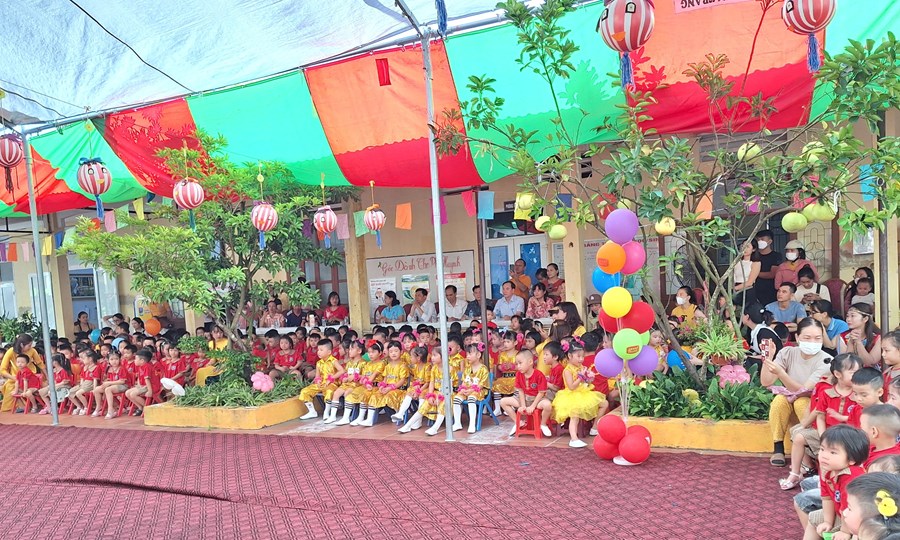 Cùng các các bậc phụ huynh, các cô giáo, các cháu trường mầm non Hòa Nghĩa cũng về dự đông đủ