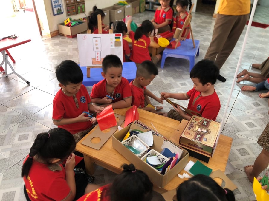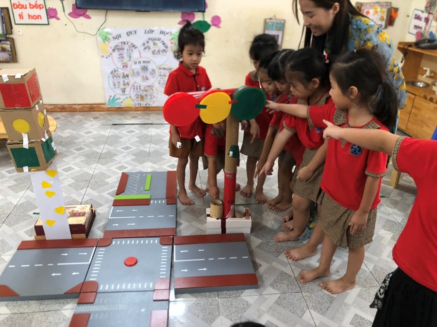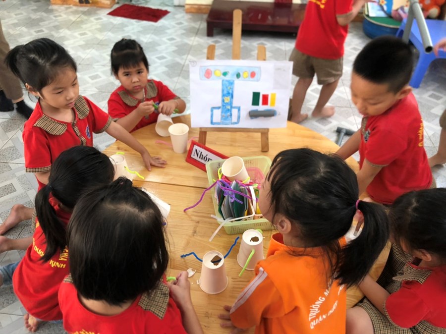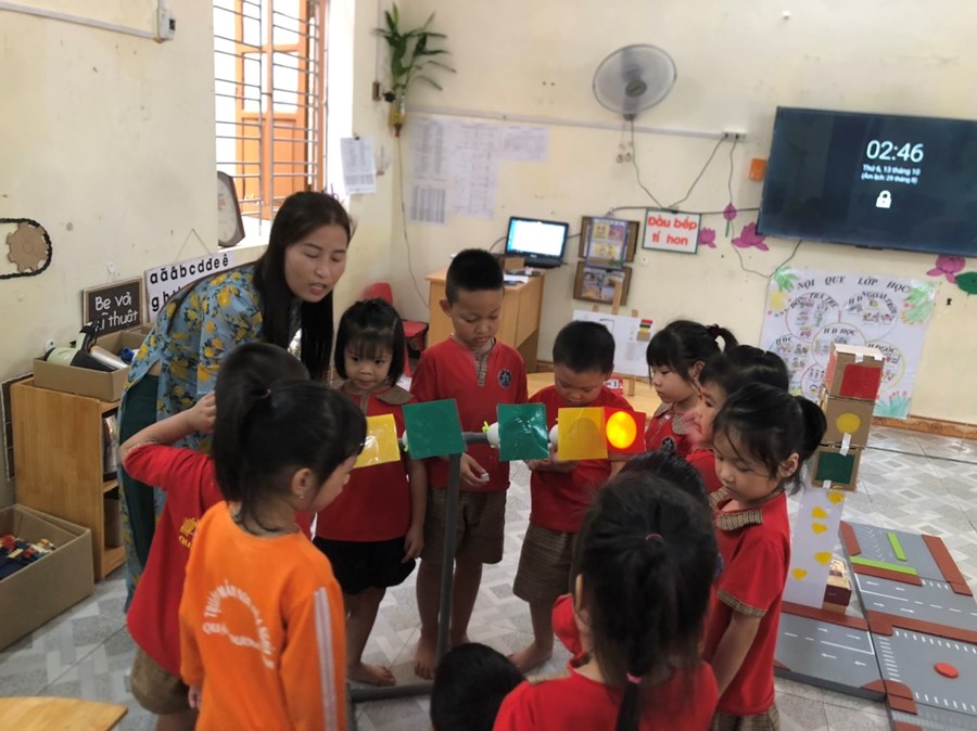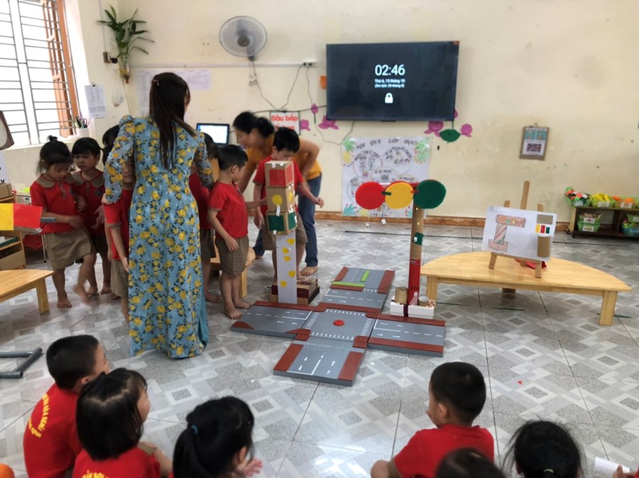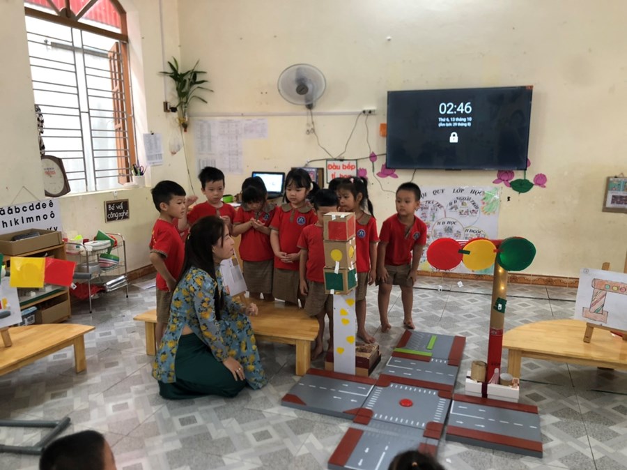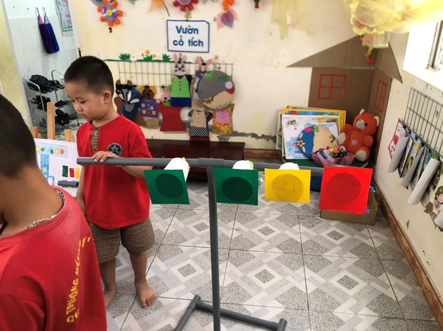 Nhằm thực hiện triển khai các nội dung kế hoạch "Tôi Yêu Việt Nam" cô và trò lớp 5 tuổi A4 đã có hoạt động thiết thực "Làm đèn tín hiệu giao thông" thông qua hoạt động phân nào các con hiểu sâu hơn về việc chấp hành luật giao thông, qua hoạt động trẻ tạo ra được mô hình những chiếc đèn giao thông, Cô và trò sẽ có những hoạt động mô phỏng khi tham gia giao thông ngay trong khuôn viên của trường, giúp trẻ có kỹ năng tốt và nhắc nhở người thân khi tham gia giao thông.