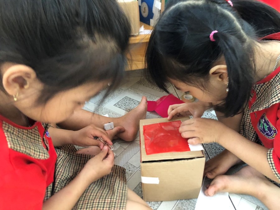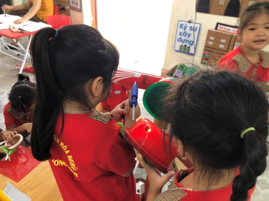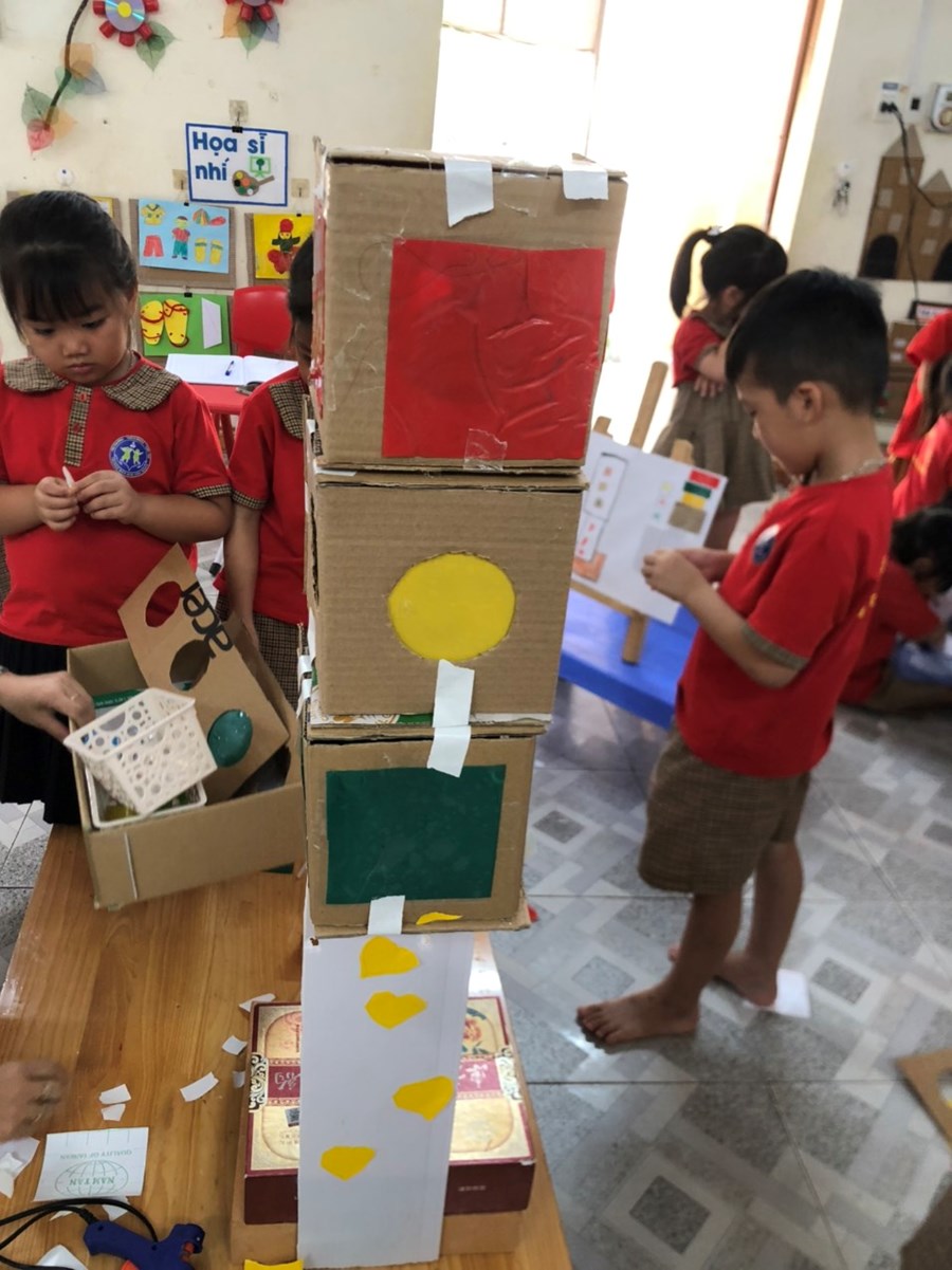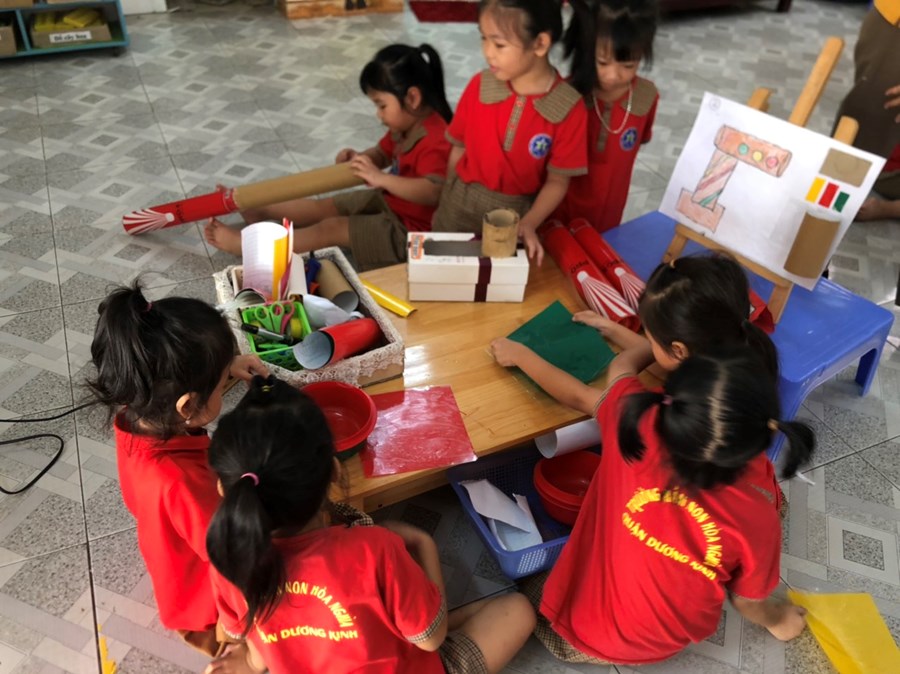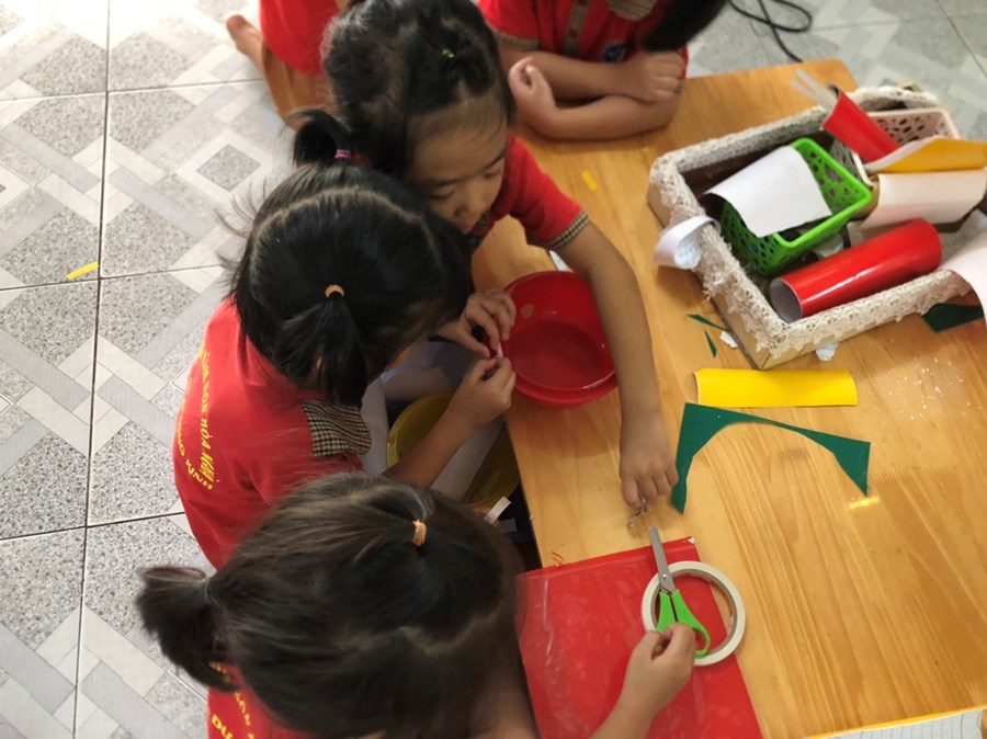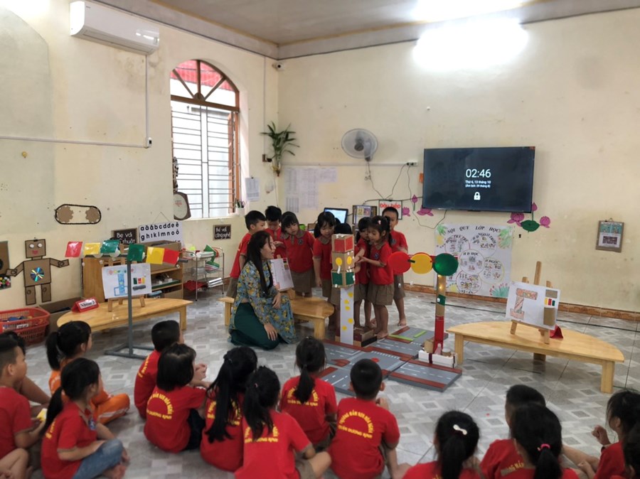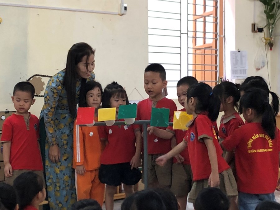 Nhằm thực hiện triển khai các nội dung kế hoạch "Tôi Yêu Việt Nam" cô và trò lớp 5 tuổi A4 đã có hoạt động thiết thực "Làm đèn tín hiệu giao thông" thông qua hoạt động phân nào các con hiểu sâu hơn về việc chấp hành luật giao thông, qua hoạt động trẻ tạo ra được mô hình những chiếc đèn giao thông, Cô và trò sẽ có những hoạt động mô phỏng khi tham gia giao thông ngay trong khuôn viên của trường, giúp trẻ có kỹ năng tốt và nhắc nhở người thân khi tham gia giao thông.