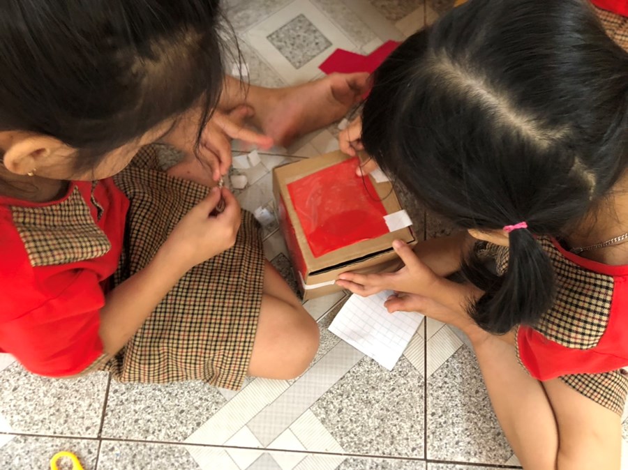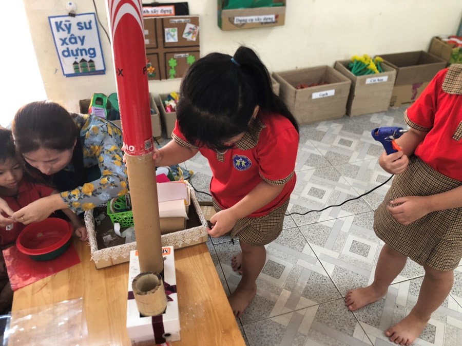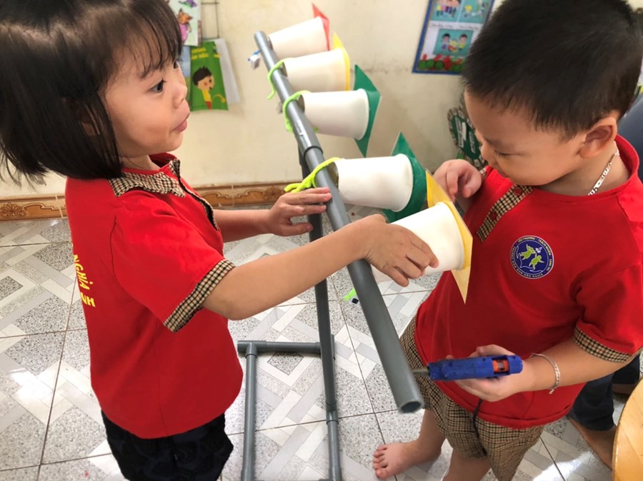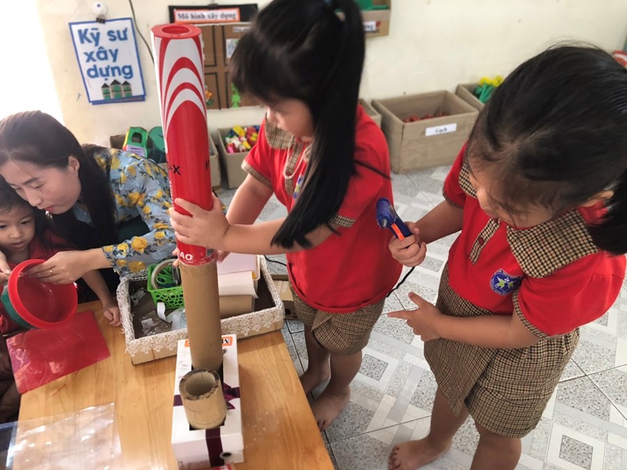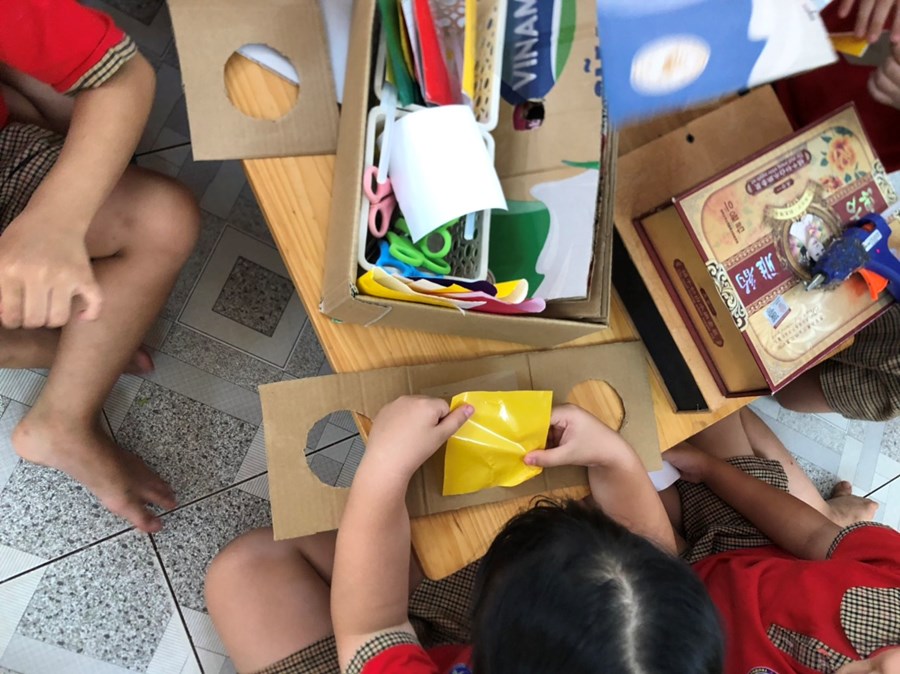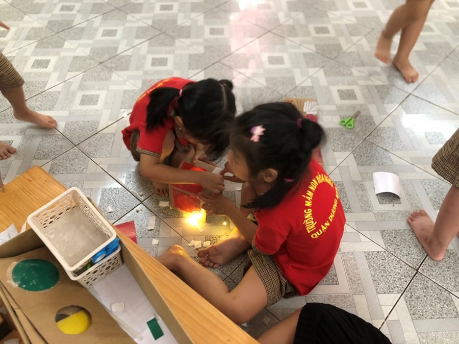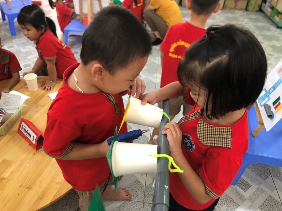 Nhằm thực hiện triển khai các nội dung kế hoạch "Tôi Yêu Việt Nam" cô và trò lớp 5 tuổi A4 đã có hoạt động thiết thực "Làm đèn tín hiệu giao thông" thông qua hoạt động phân nào các con hiểu sâu hơn về việc chấp hành luật giao thông, qua hoạt động trẻ tạo ra được mô hình những chiếc đèn giao thông, Cô và trò sẽ có những hoạt động mô phỏng khi tham gia giao thông ngay trong khuôn viên của trường, giúp trẻ có kỹ năng tốt và nhắc nhở người thân khi tham gia giao thông.