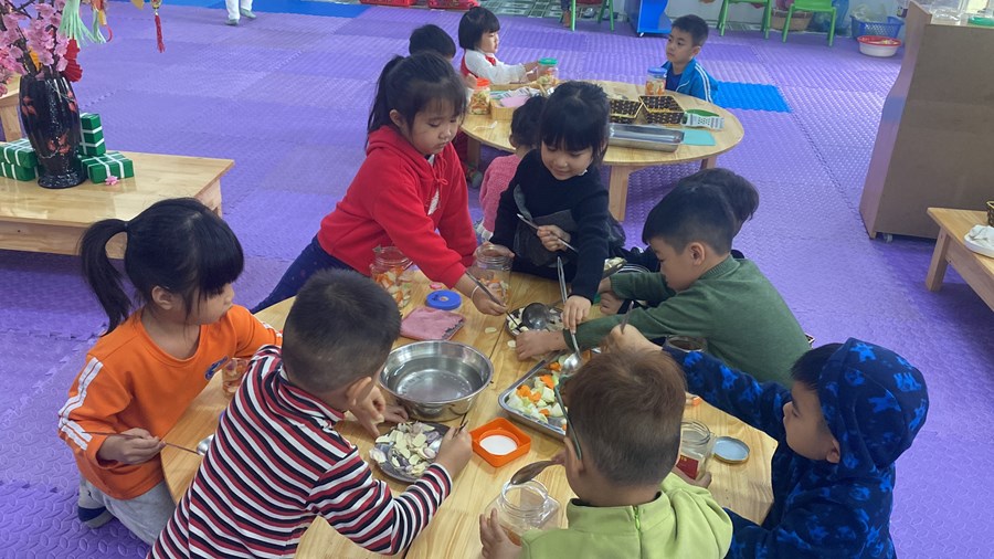 Sáng ngày 12.01.2023 nhà trường tổ chức lễ hội “Bé vui đón tết” đến với lễ hội các bé được tham gia nhiều hoạt động ý nghĩa cùng ông bà, bố mẹ, các bé được tự mình trải nghiệm tạo ra rất nhiều món ăn, đồ dùng trang trí ngày tết và bây giờ bố mẹ cùng xem con làm được nhưng gì nhé.