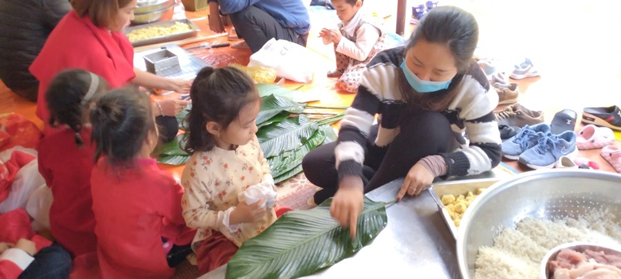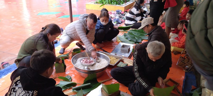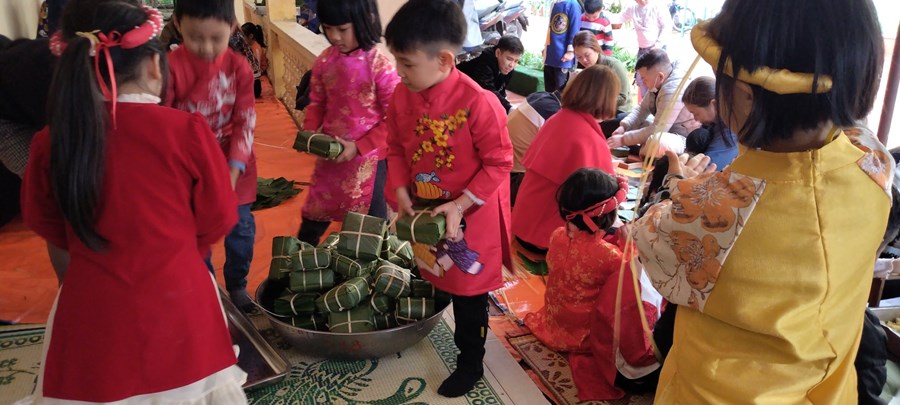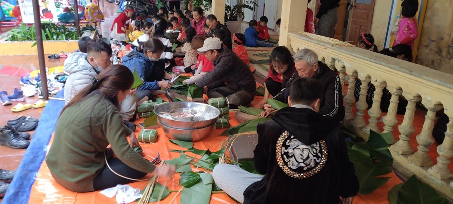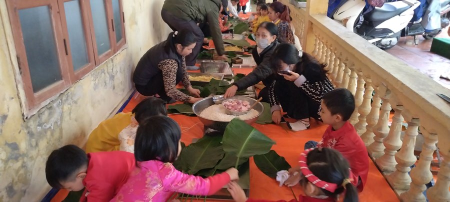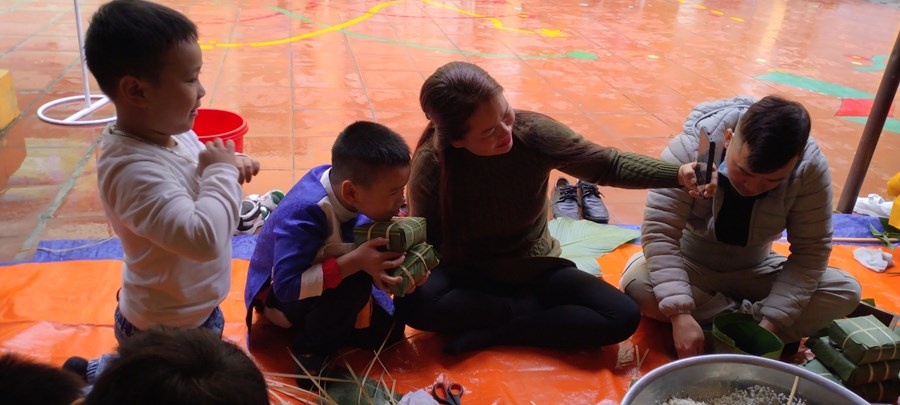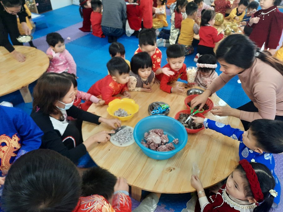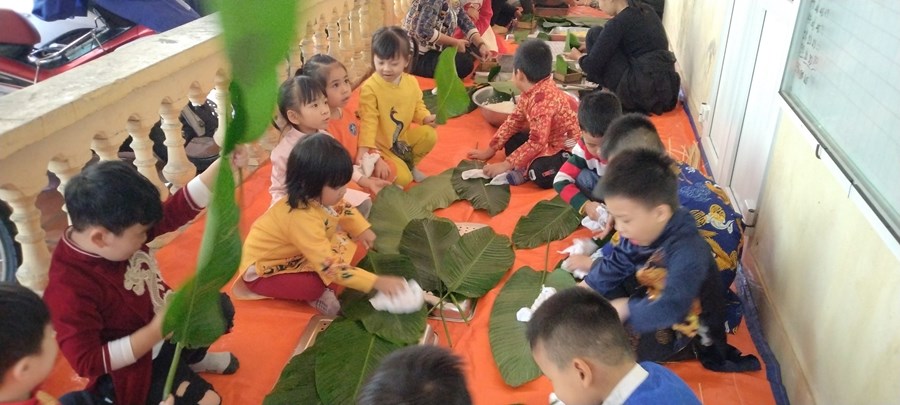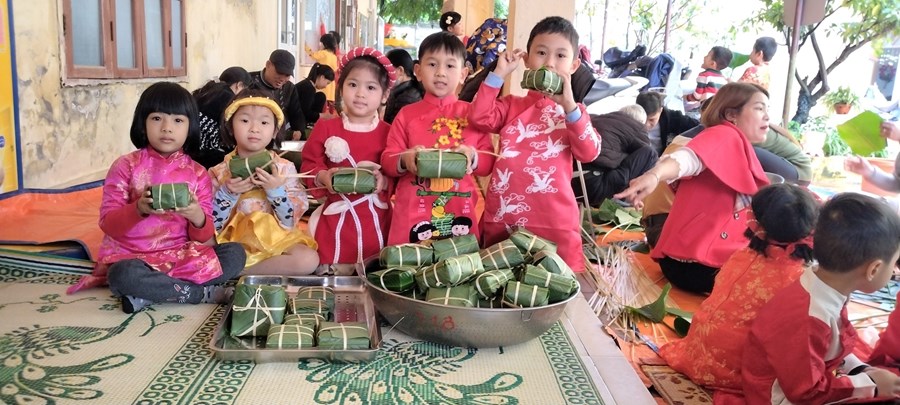 Mỗi khi Tết đến Xuân về, người người, nhà nhà lại gói bánh chưng ăn Tết và mỗi dịp tết đến xuân về, cô và trò trường mầm non Hòa Nghĩa lại có những hoạt động trải nghiệm vô cùng ý nghĩa như: gói bánh chưng, làm một số món ăn đặc trưng về ngày tết …giúp các bé có thêm những hiểu biết về ngày tết cô truyền dân tộc