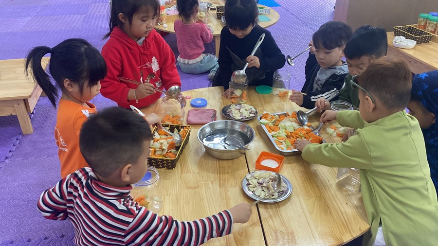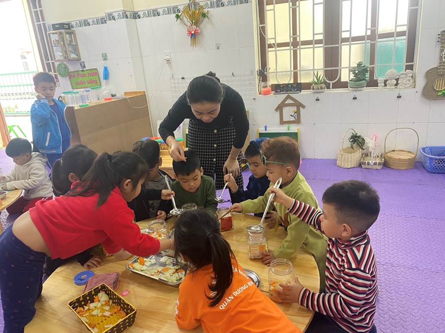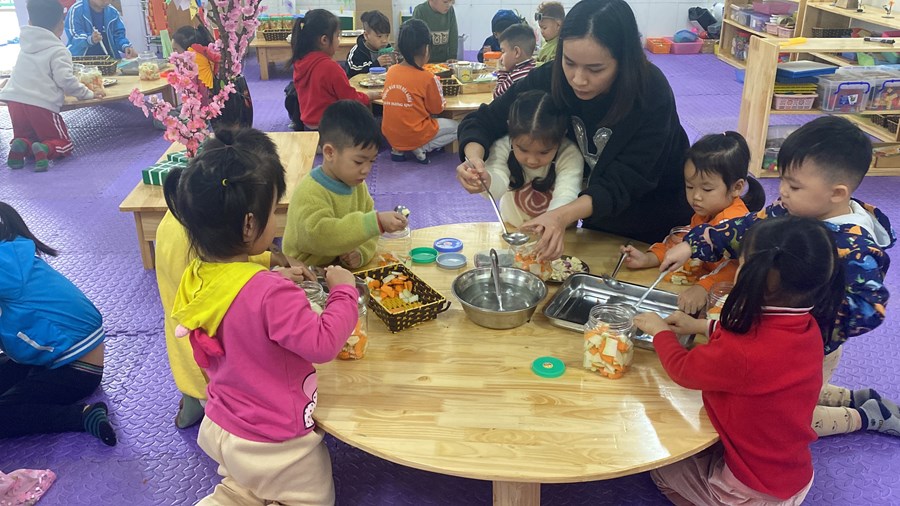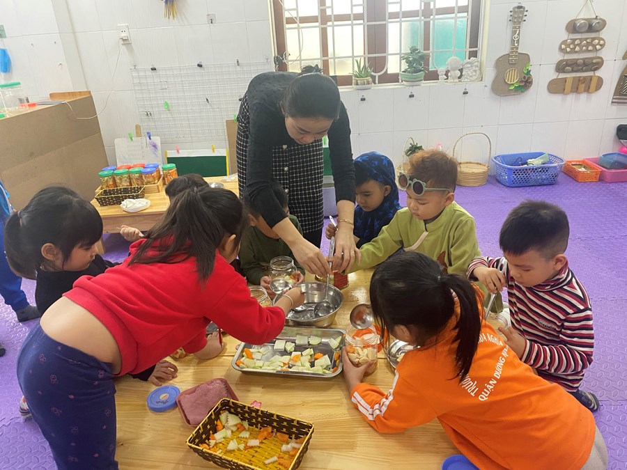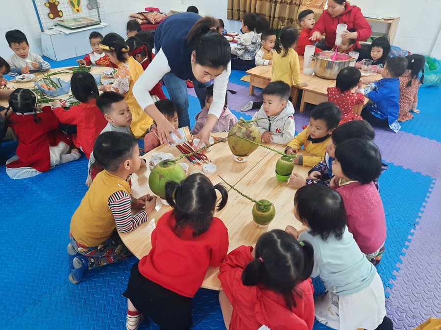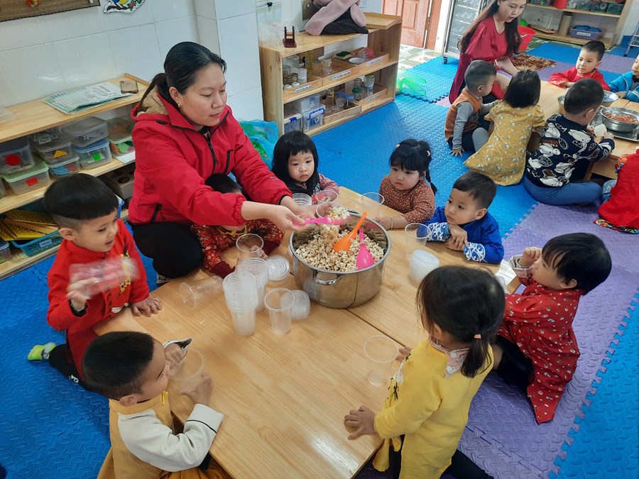 Mỗi khi Tết đến Xuân về, người người, nhà nhà lại gói bánh chưng ăn Tết và mỗi dịp tết đến xuân về, cô và trò trường mầm non Hòa Nghĩa lại có những hoạt động trải nghiệm vô cùng ý nghĩa như: gói bánh chưng, làm một số món ăn đặc trưng về ngày tết …giúp các bé có thêm những hiểu biết về ngày tết cô truyền dân tộc