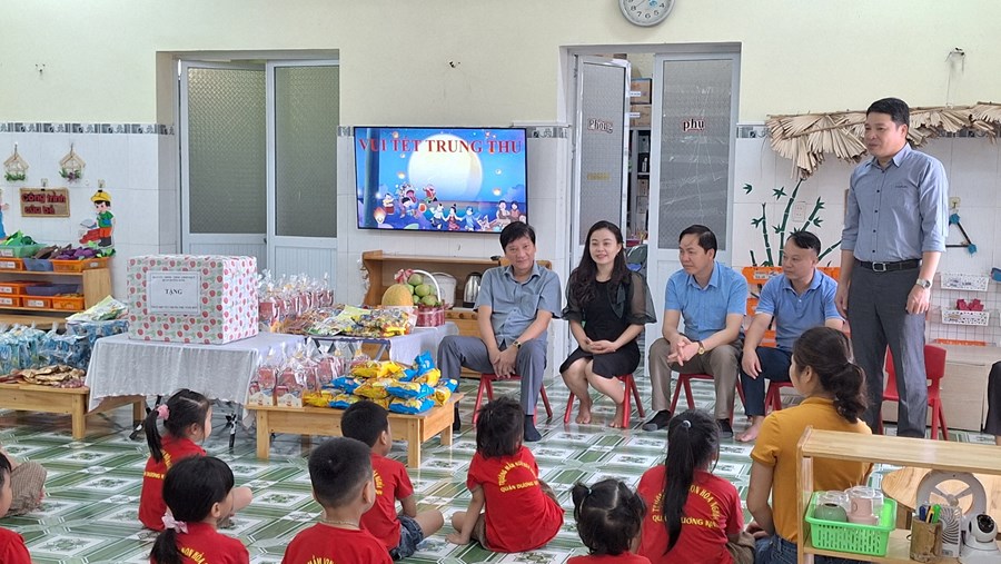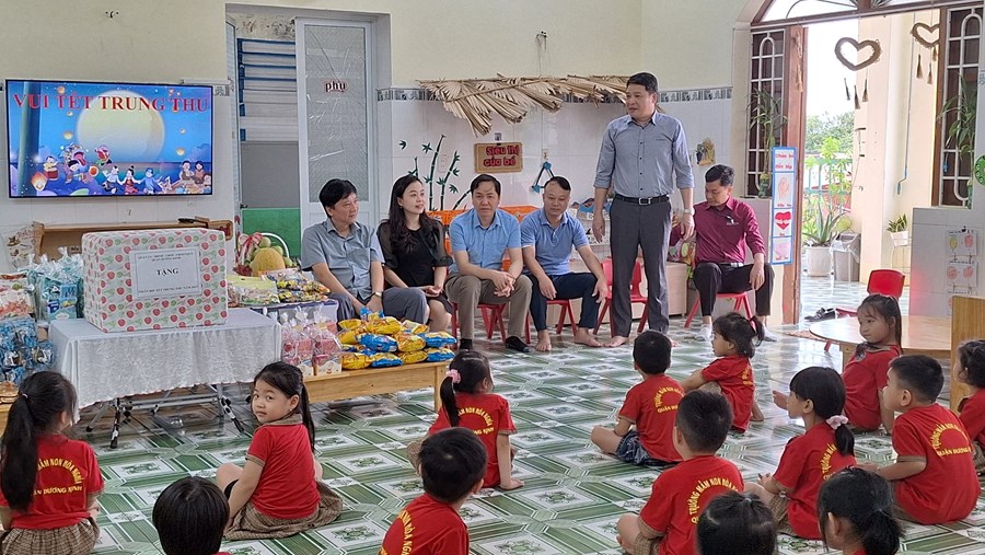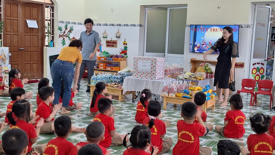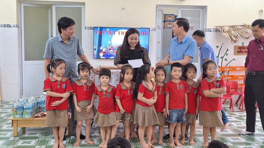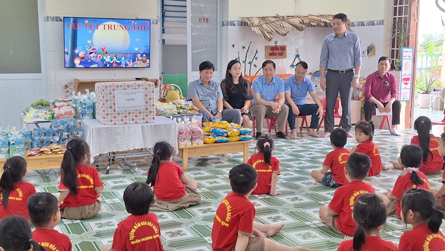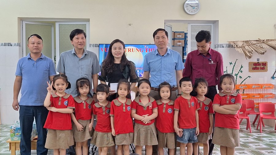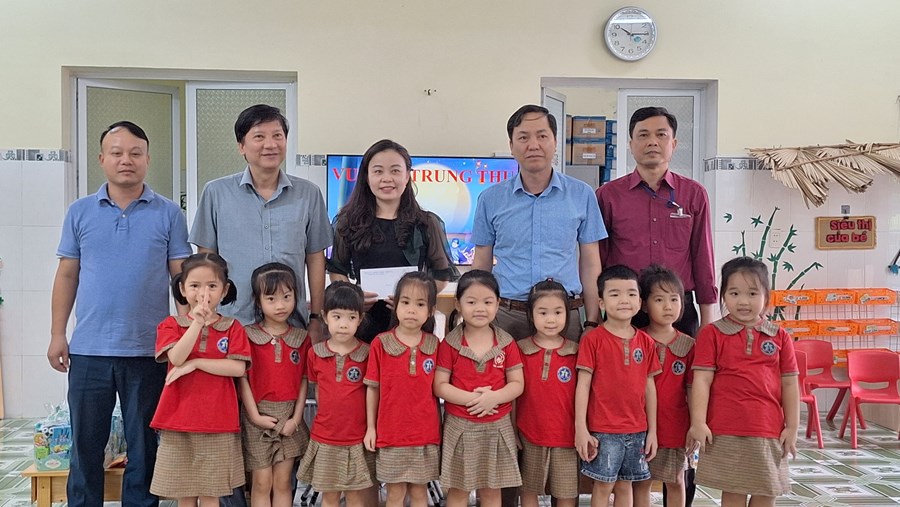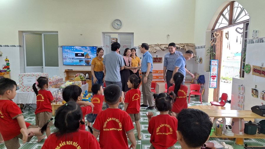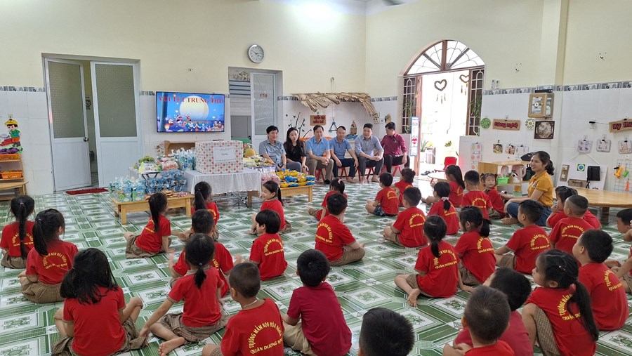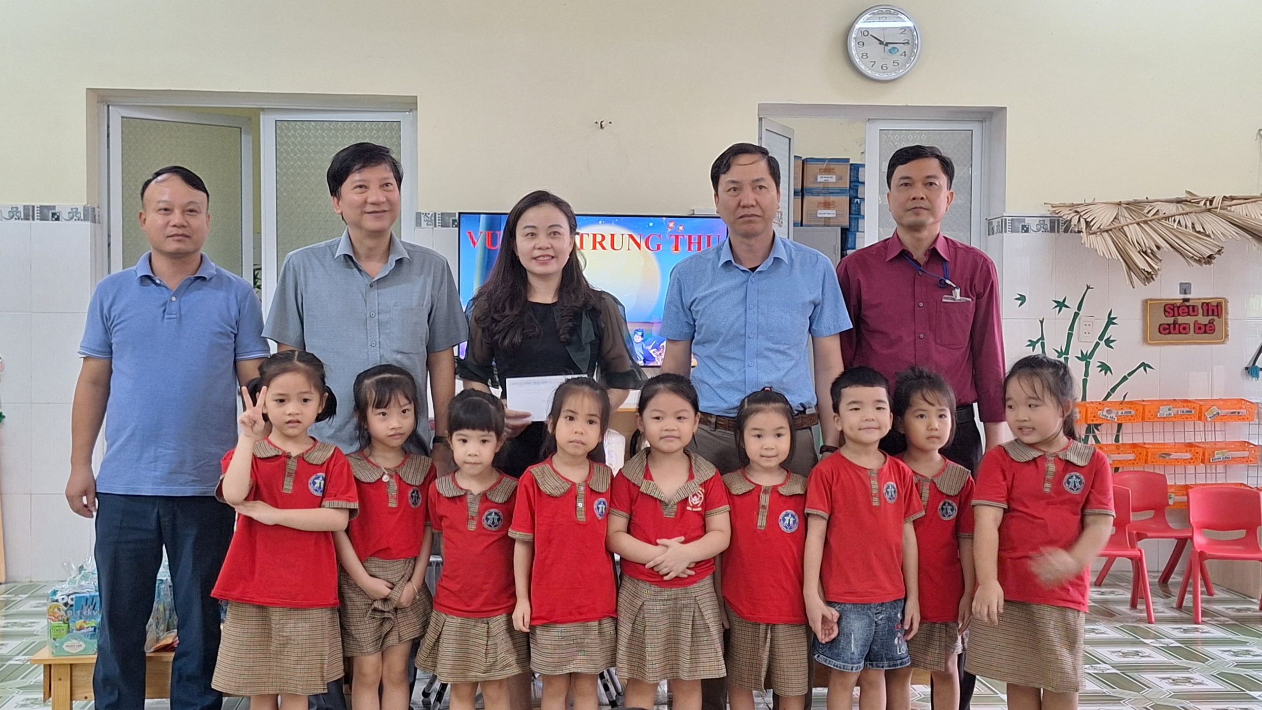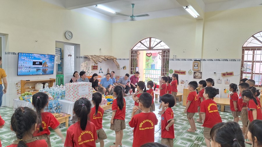 Cùng toàn thể các bác Lãnh đạo phường Hòa Nghĩa đến thăm trường và tặng quà cho các bé trong trường.