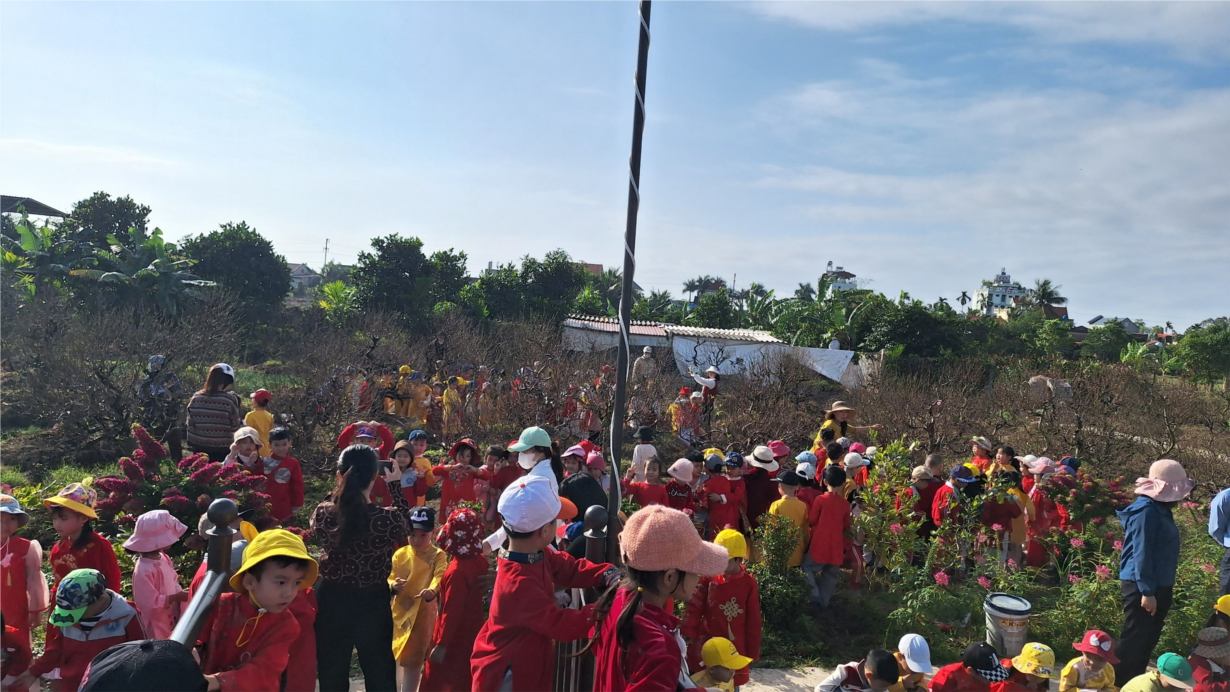 Nằm trong chuỗi các hoạt động dự án "Bé vui đón tết cổ truyền" các bé trường mầm non Hòa Nghĩa có buổi trải nghiệm vô cùng thú vị "thăm quan vườn đào" qua buổi trải nghiệm thực tế các bé nắm được tên gọi, đặc điểm, màu sắc, cách trồng, chăm sóc cây hoa đào và đặc biệt trẻ biết được ý nghĩa của cây hoa đào trong dịp tết đến xuân về: Hoa đào biểu tượng của sự an khang thịnh vượng: Sắc hồng của hoa đào được xem là màu sắc mang lại may mắn, sự ấm cúng, niềm vui, niềm tin, tình yêu và những hy vọng một năm mới hạnh phúc, bình an .