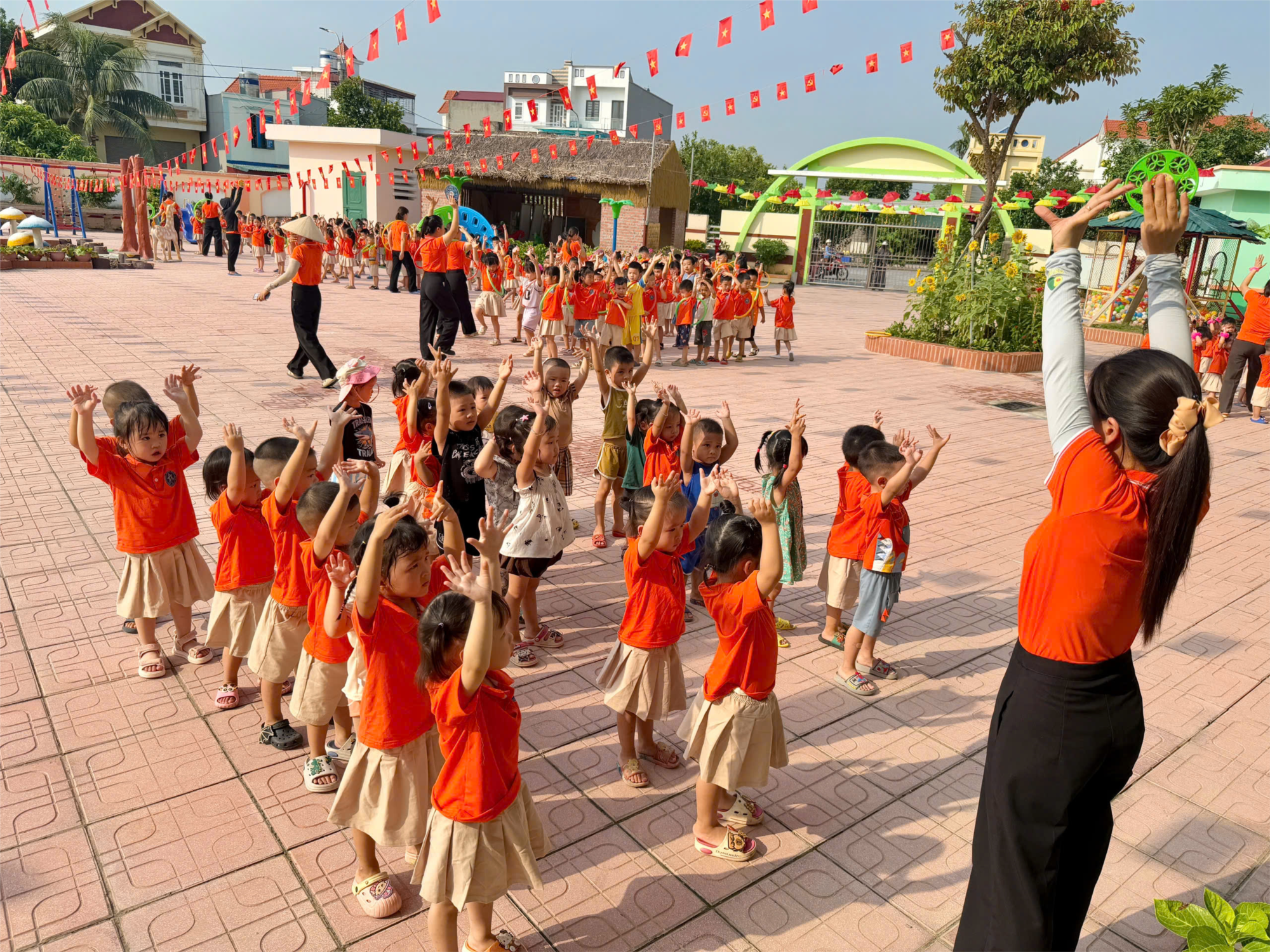 Trong những ngày đầu năm học mới, các bé trường mầm non Hòa Nghĩa được tham gia đầy đủ các hoạt động: khởi động ngày mới với giờ thể dục sáng ngoài trời vui tươi, rèn luyện kỹ năng và kiến thức qua các giờ học hứng thú, thỏa sức sáng tạo trong các hoạt động vui chơi, đồng thời được chăm sóc chu đáo từ bữa ăn, giấc ngủ đến vệ sinh cá nhân, tạo cho trẻ một môi trường học tập và sinh hoạt an toàn, thân thiện